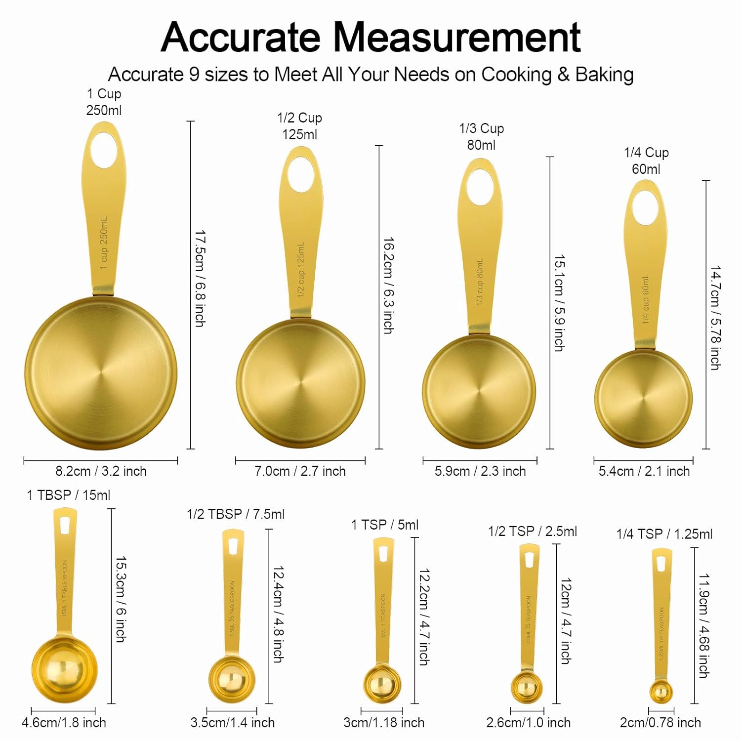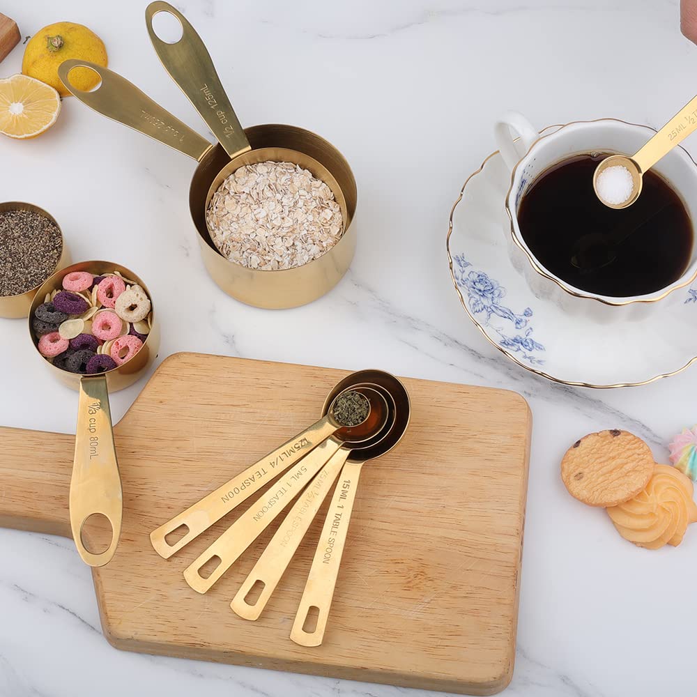 Durable and sturdy: Measuring cups and measuring spoons set are made of premium high quality food grade stainless steel with gold polished finish which means that will never rust