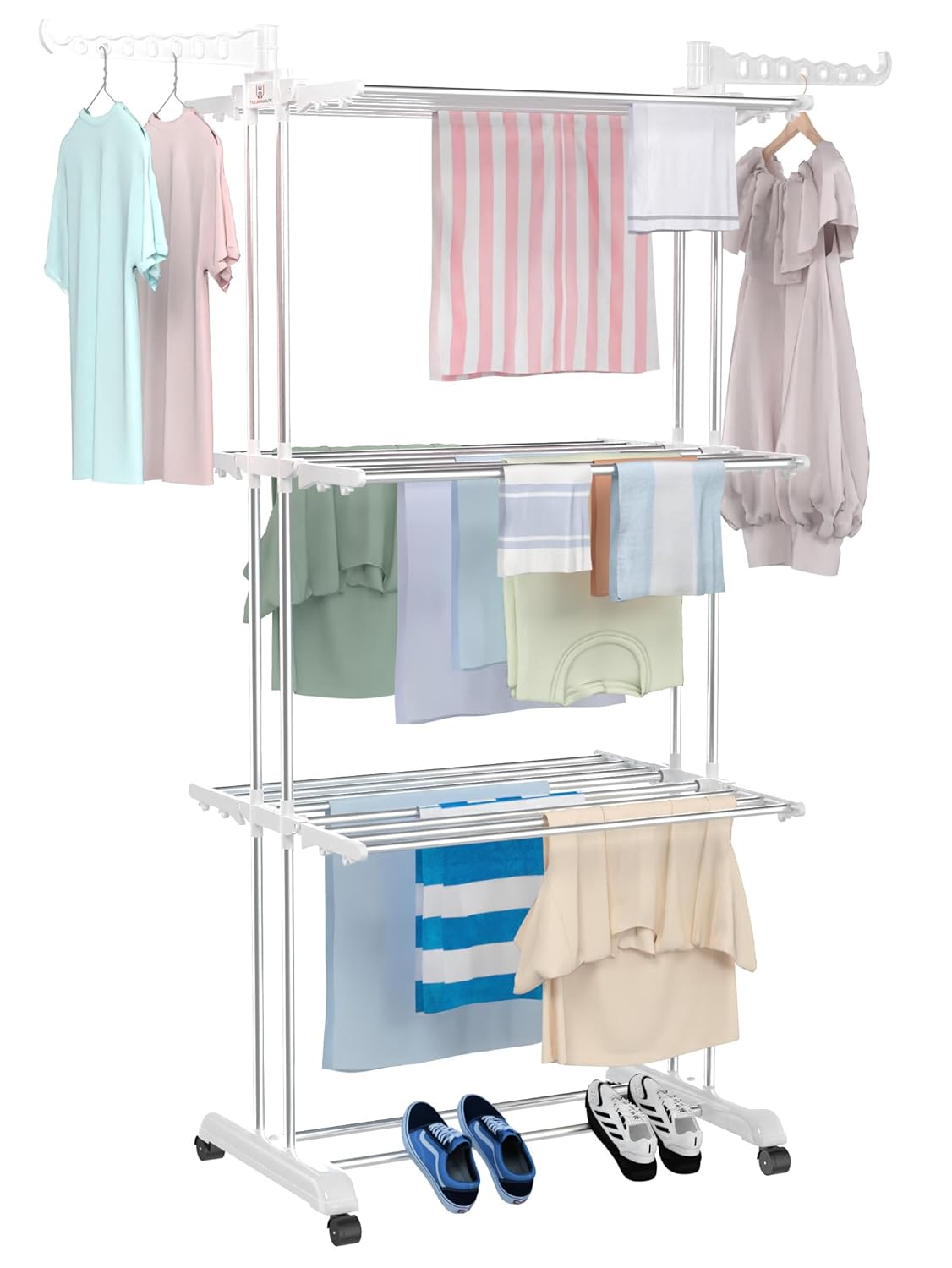 H Houseware Premium Heavy Duty Stainless Steel Foldable Cloth Drying Stand/Clothes Stand for Drying/Cloth Stand/Clothes Dryer/Laundry Racks with Wheels