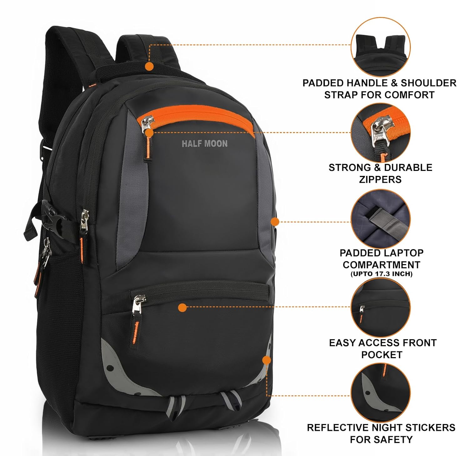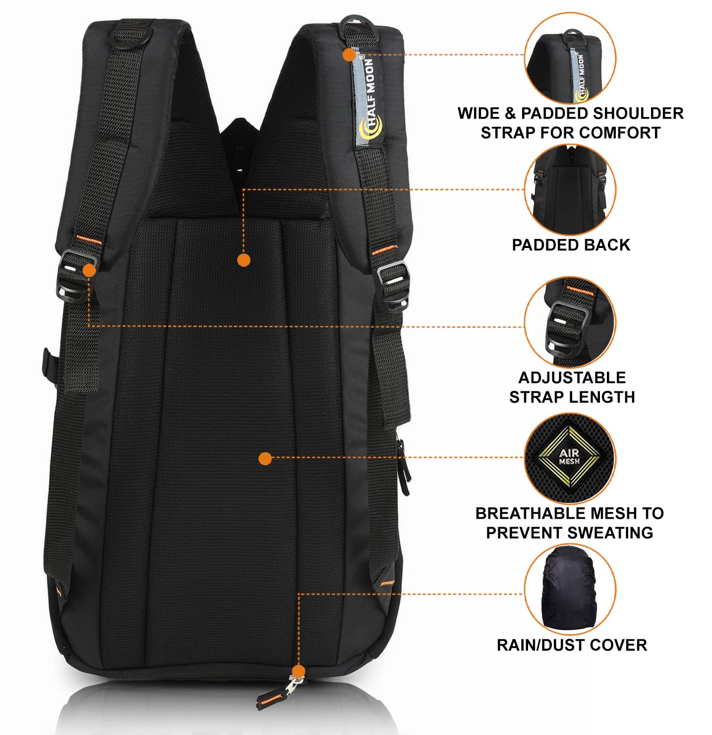 Be the first to review “Half Moon 35L Water Resistant 17.3″ Laptop Bag for Men/Bagpacker Bag for Man| Office Bag for Mens Bag for Women with Padded Laptop Compartment | Spacious & Multiple Pockets (Black & Orange)” Cancel reply