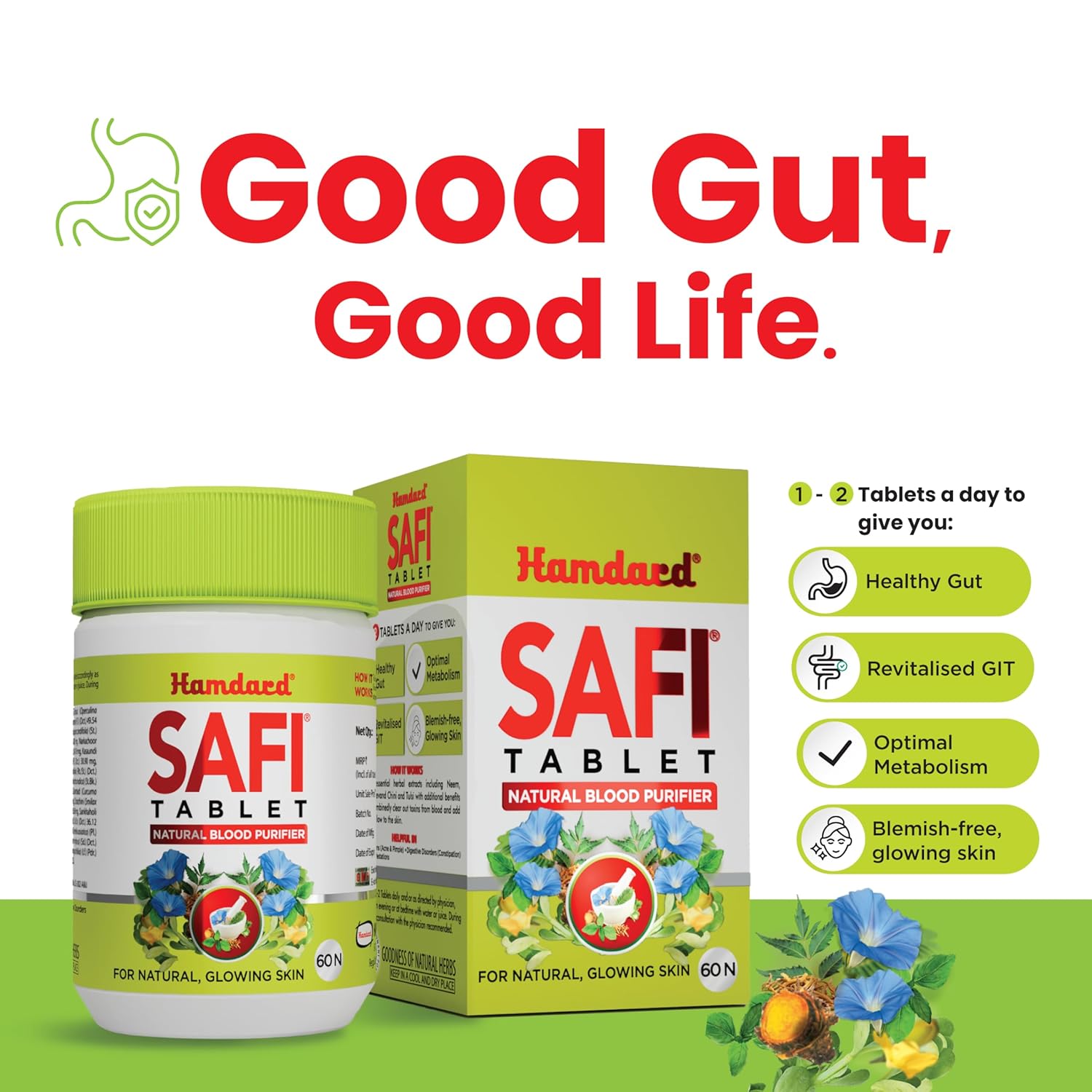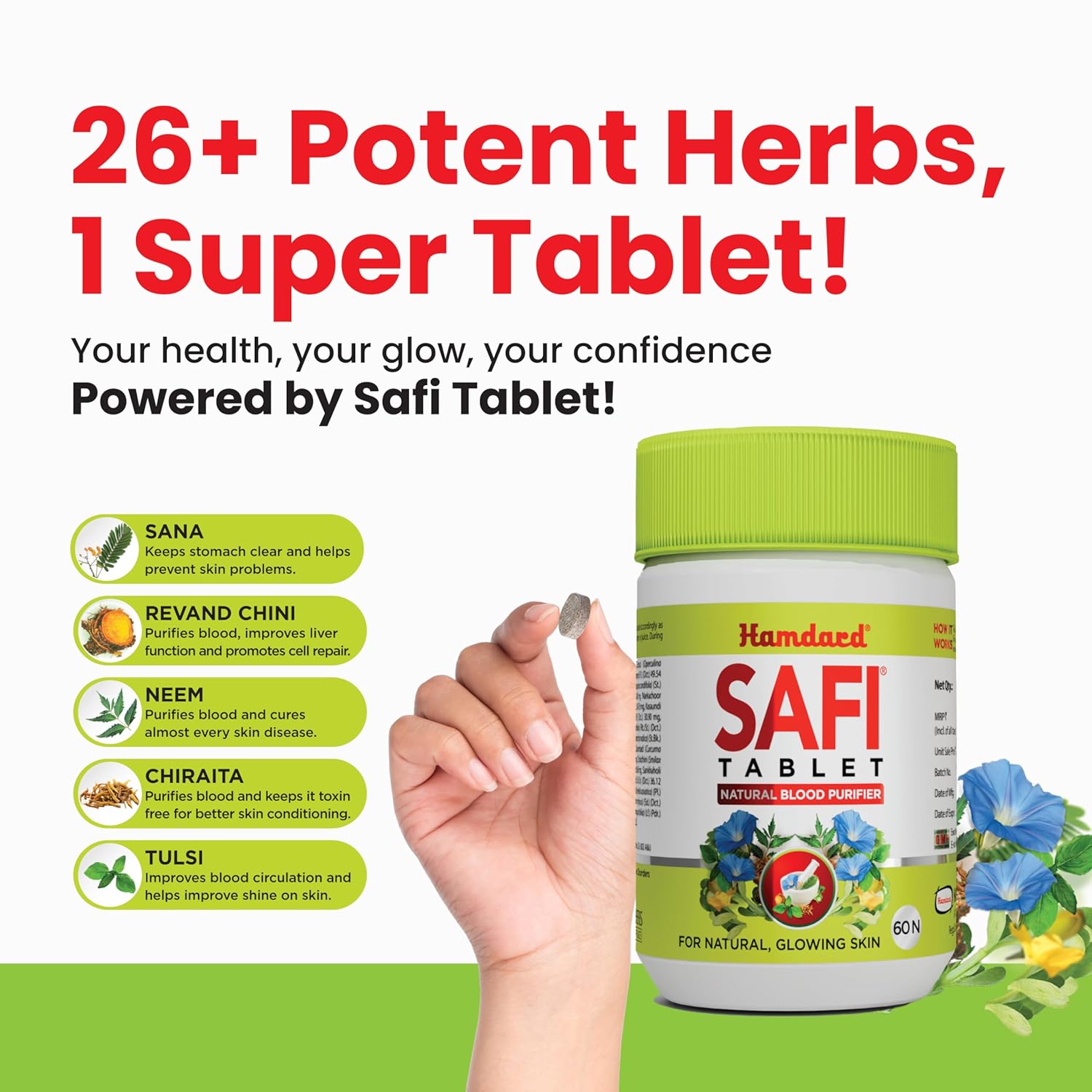 Generic Name ‏ : ‎ Hamdard Safi Tablet for Healthy & Glowing Skin | Natural Blood Purifier | Anti-Bacterial & Detoxifier – 60 Tablets