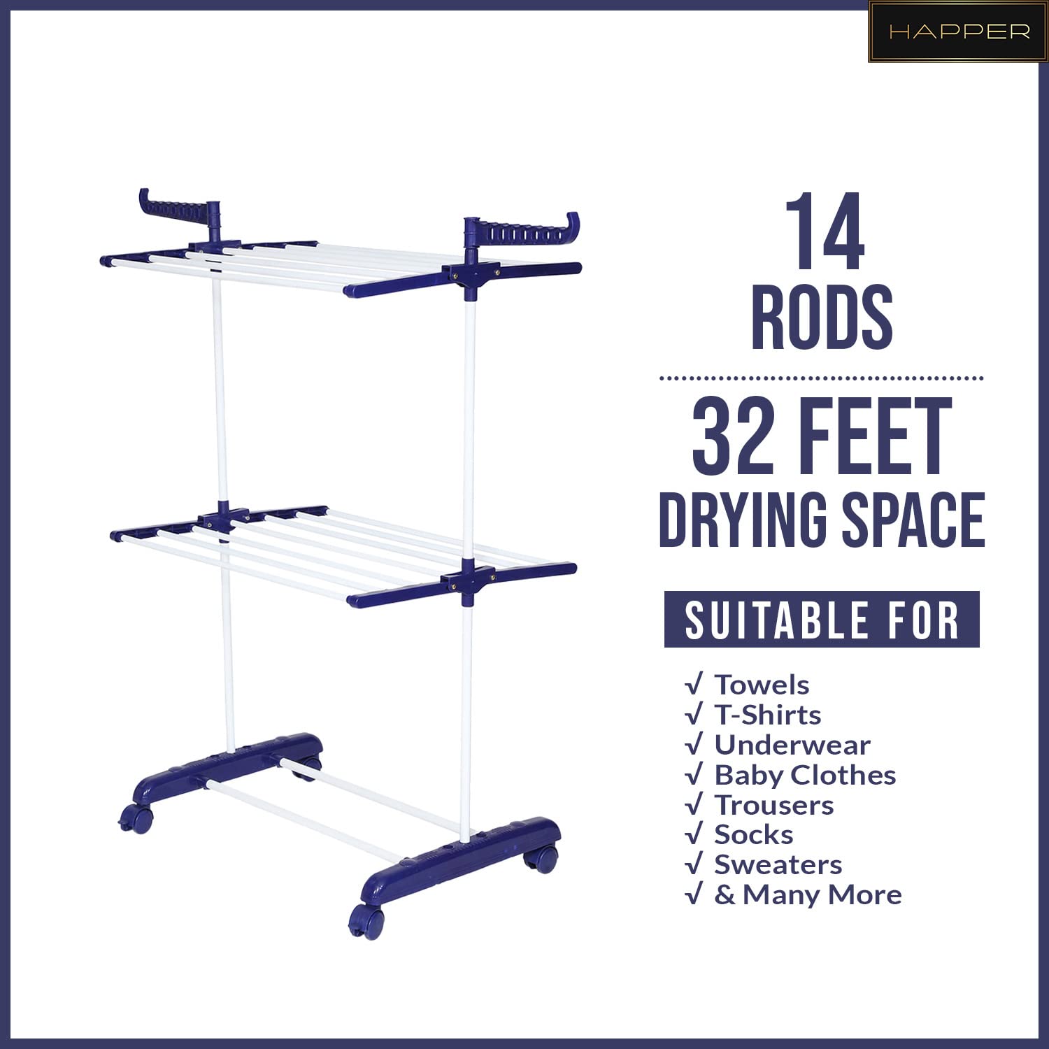 Customers find the drying rack easy to assemble with clear instructions and appreciate its compact jumbo size that works well in small spaces. They consider it a budget-friendly option for daily drying needs, with sufficient space for multiple items and wheels that make it easy to move around. The rack receives mixed feedback about its sturdiness and capacity, with some finding it very flimsy while others report it can hold many clothes.