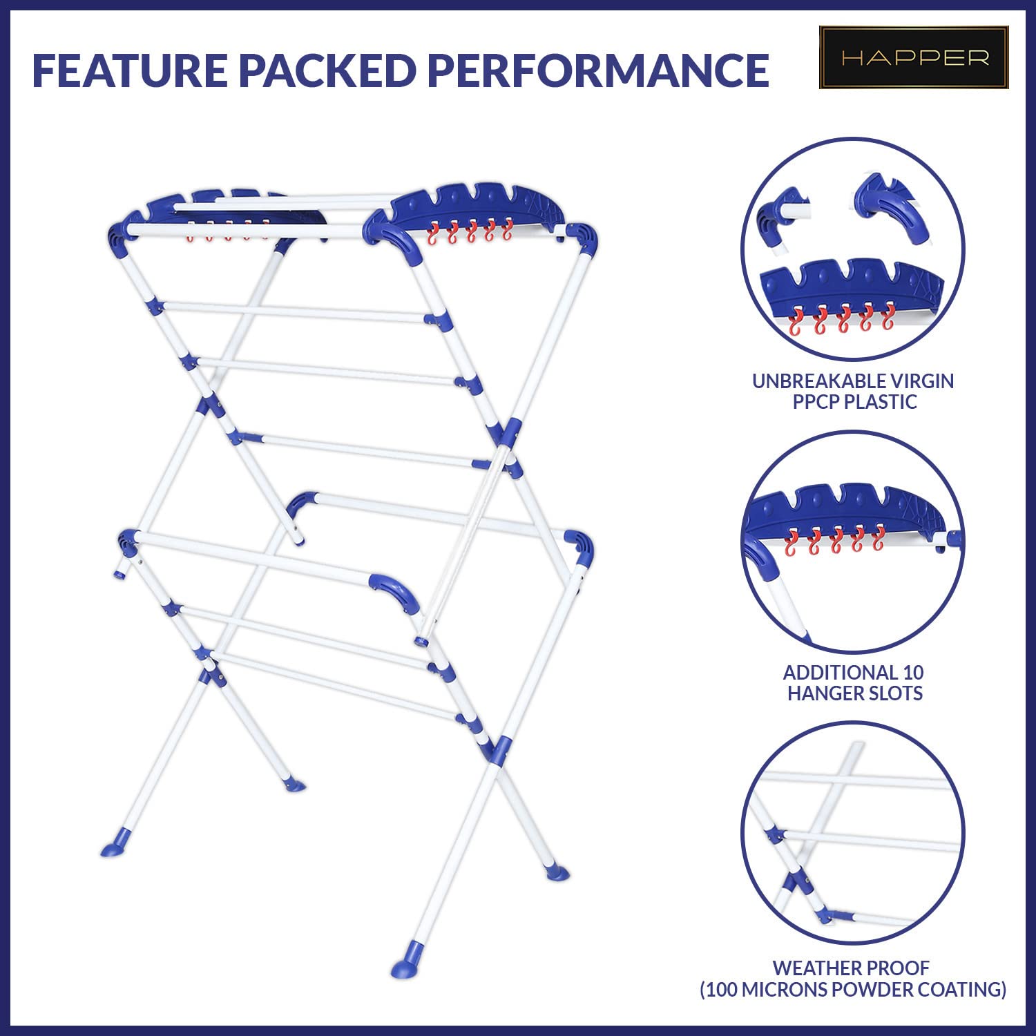 Selected strong material: Constructed from selected Good quality white coated stainless steel (All weather proof) and Virgin PPCP Plastic (Non-Breakable) will offer you long term laundry organization system