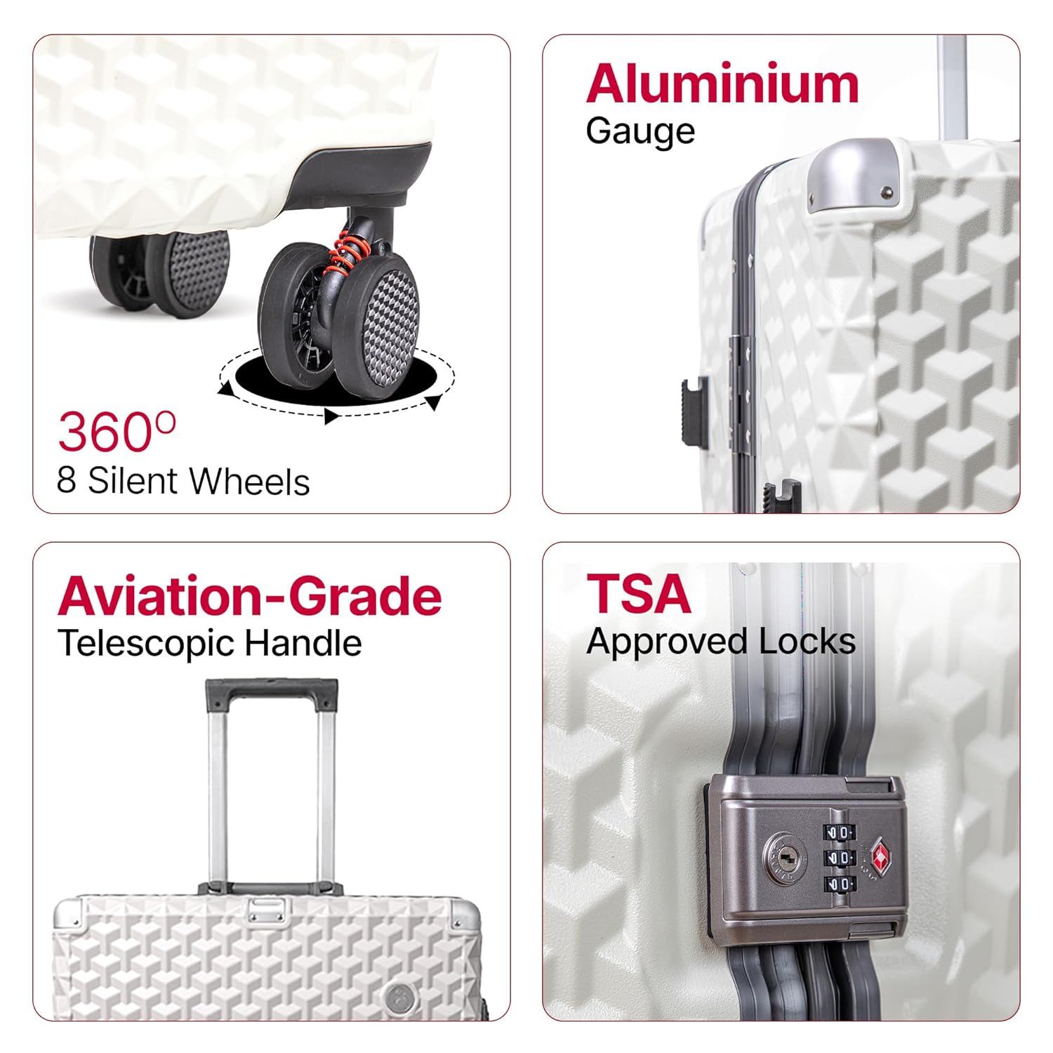 SMOOTH SILENT WHEELS comes with 8 ultra-silent, 360 wheels, allowing you to move smoothly in any direction. Whether it’s a busy airport or rough terrain, this trolley bag glides effortlessly.