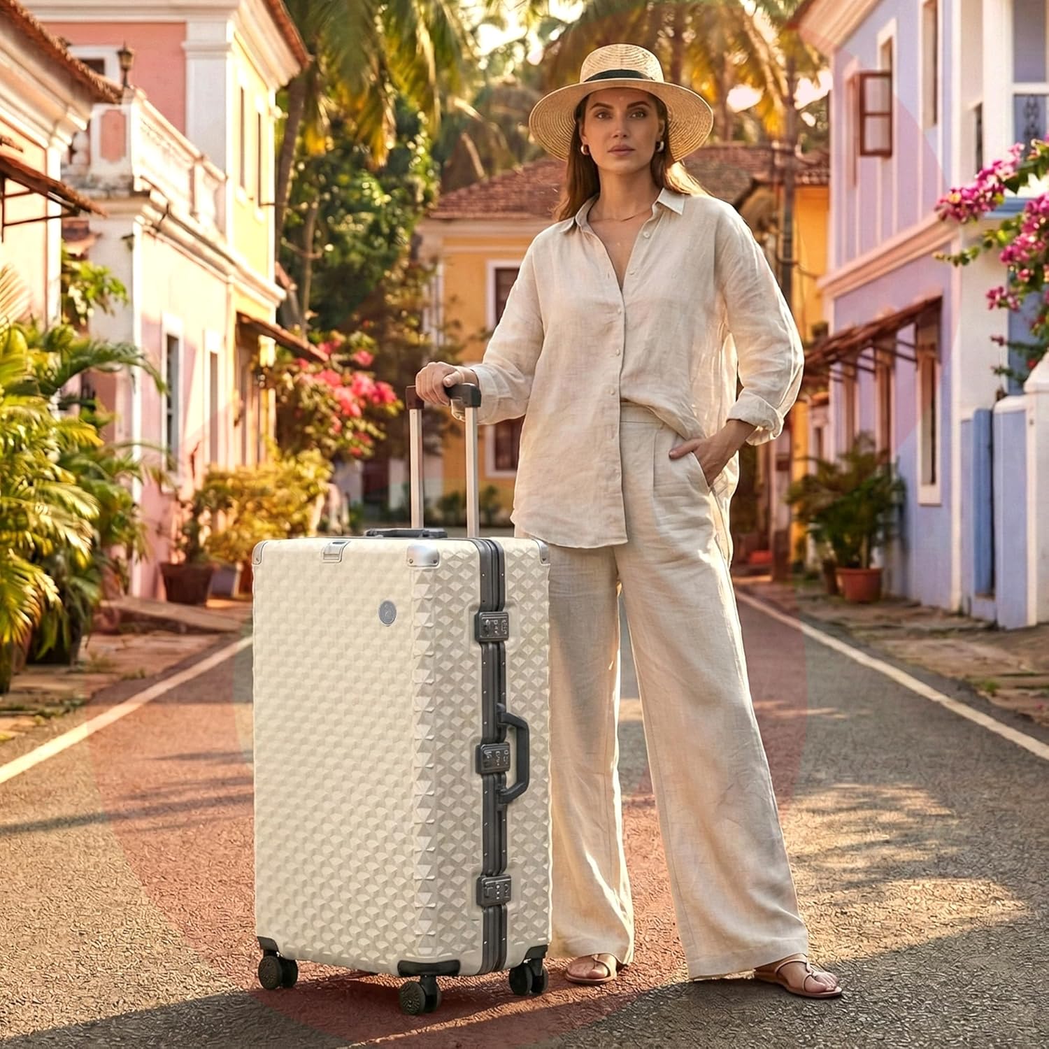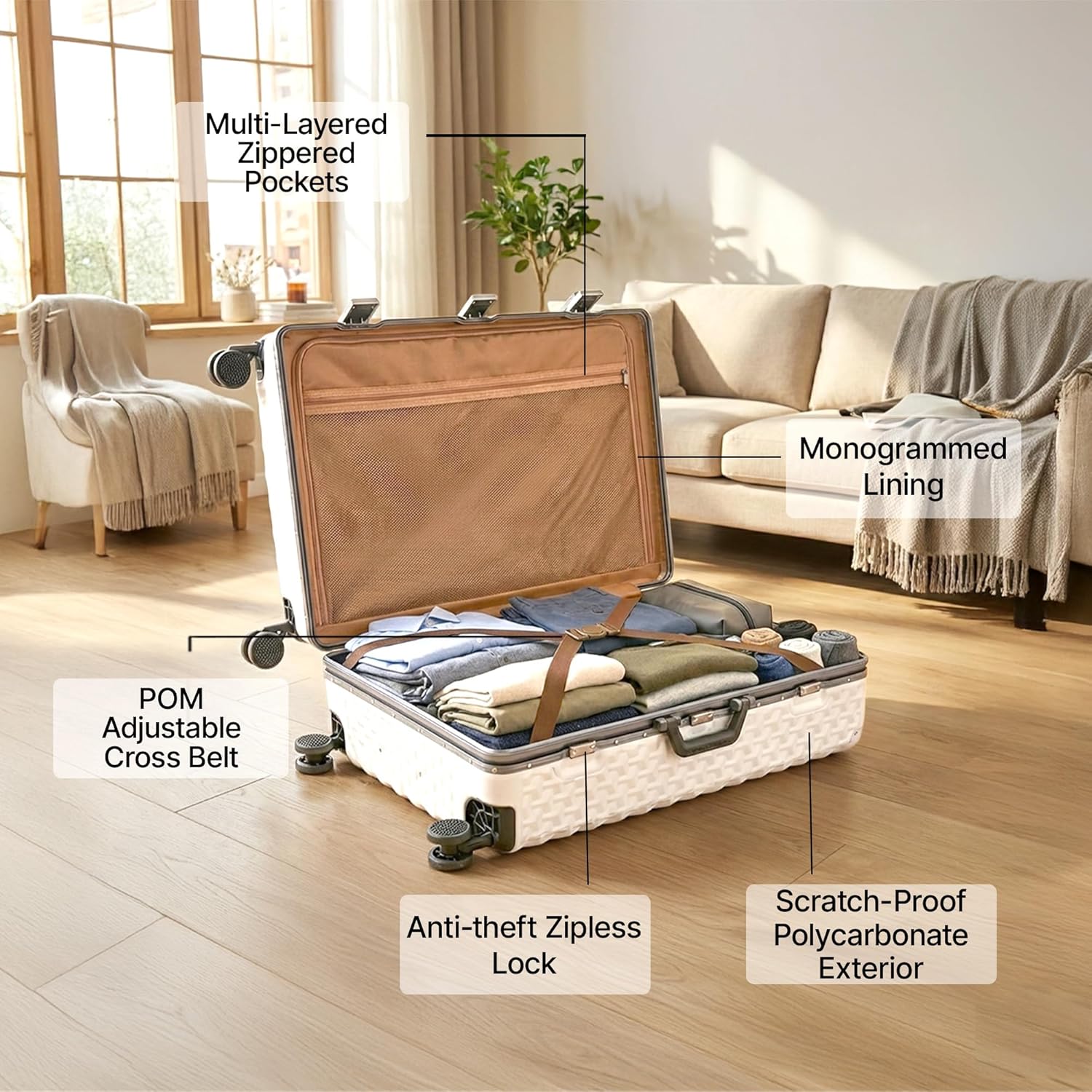 ANTI-THEFT FEATURE This trolley bag for travel has dual TSA locks and a strong aluminium frame, keeping your belongings safe from impact and unauthorised access for worry-free travel.