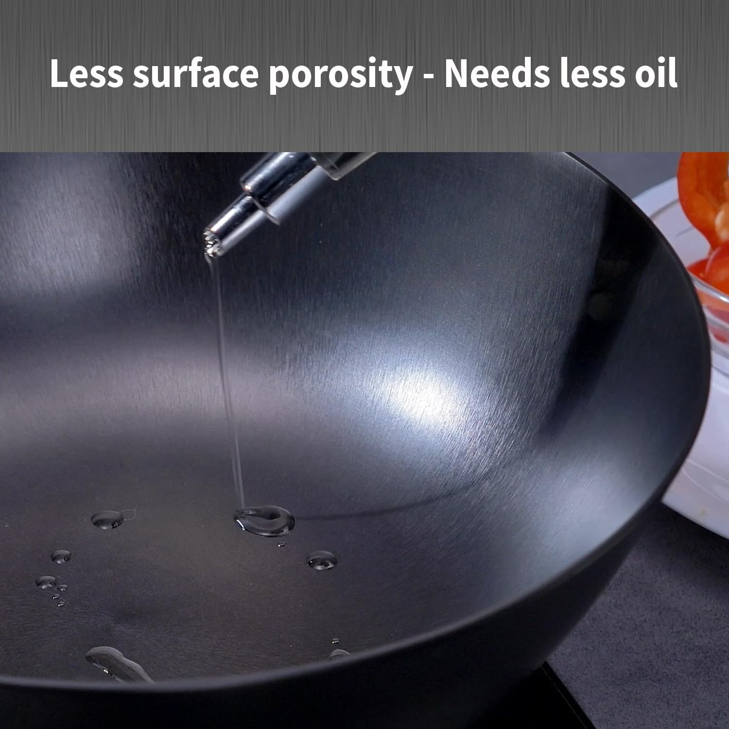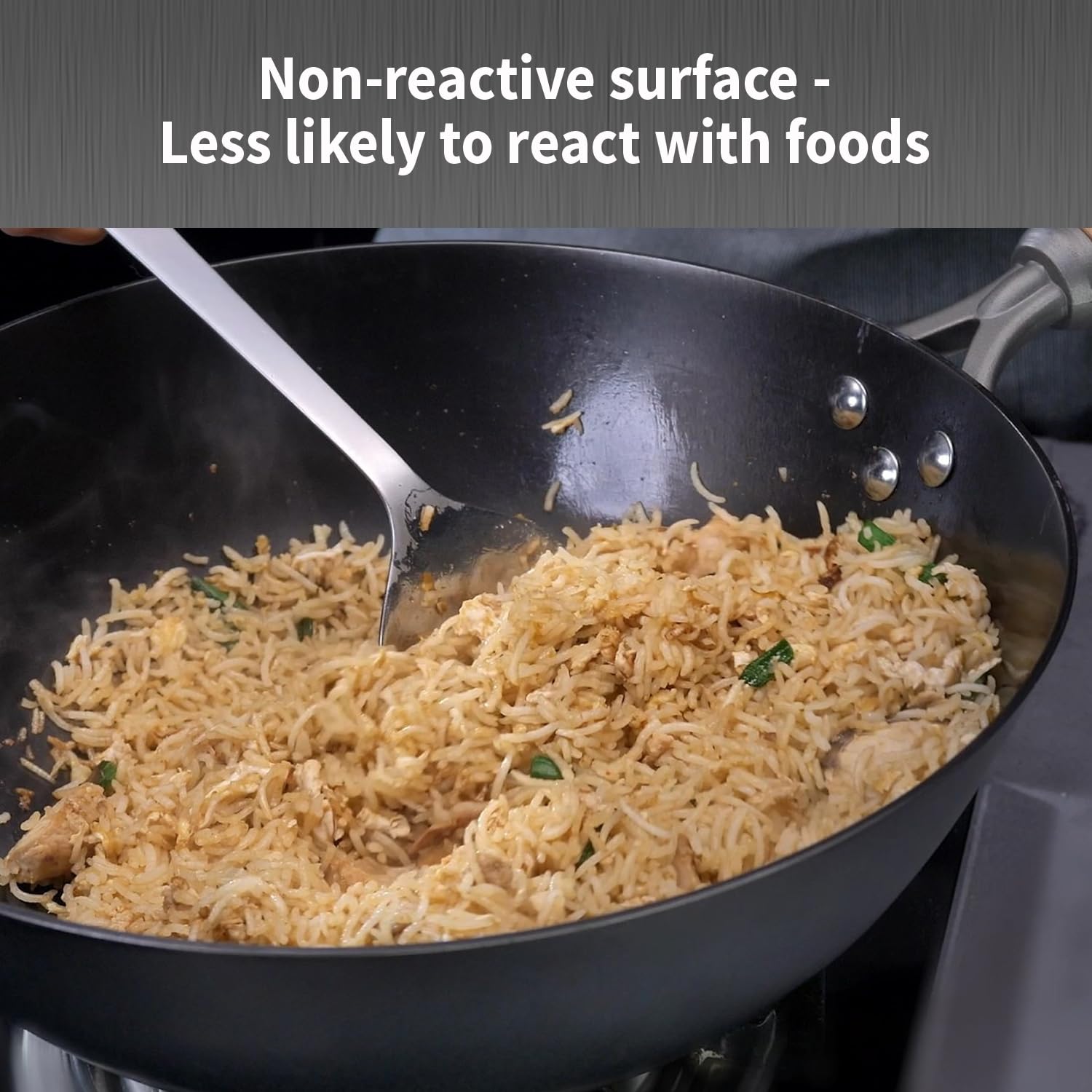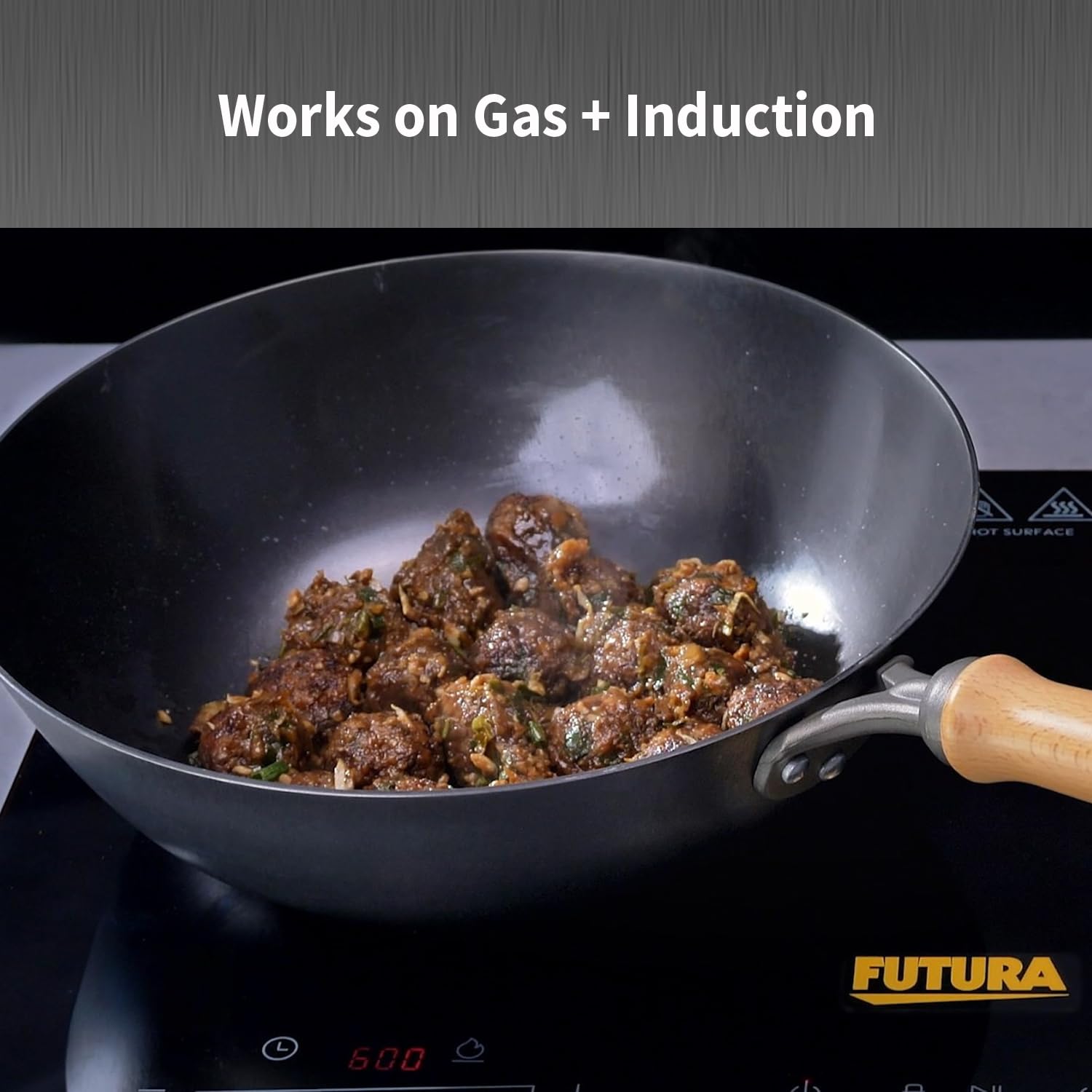 The Hawkins Futura Ironman 4.75 Litre Slim Cast Iron Stir-Fry Wok (IMW475) combines the strength of cast iron with a lighter, easy-to-handle design. Made with nitrided iron, it has a hardened surface that resists abrasion, is corrosion-resistant, and less likely to rust. Its low-porosity surface needs less oil, while the non-reactive finish ensures food retains its natural taste. Perfect for searing & stir-frying, this pan withstands high heat without damage. Built to last for years, this slim cast iron frying pan is durable, versatile, and designed for healthy everyday cooking.