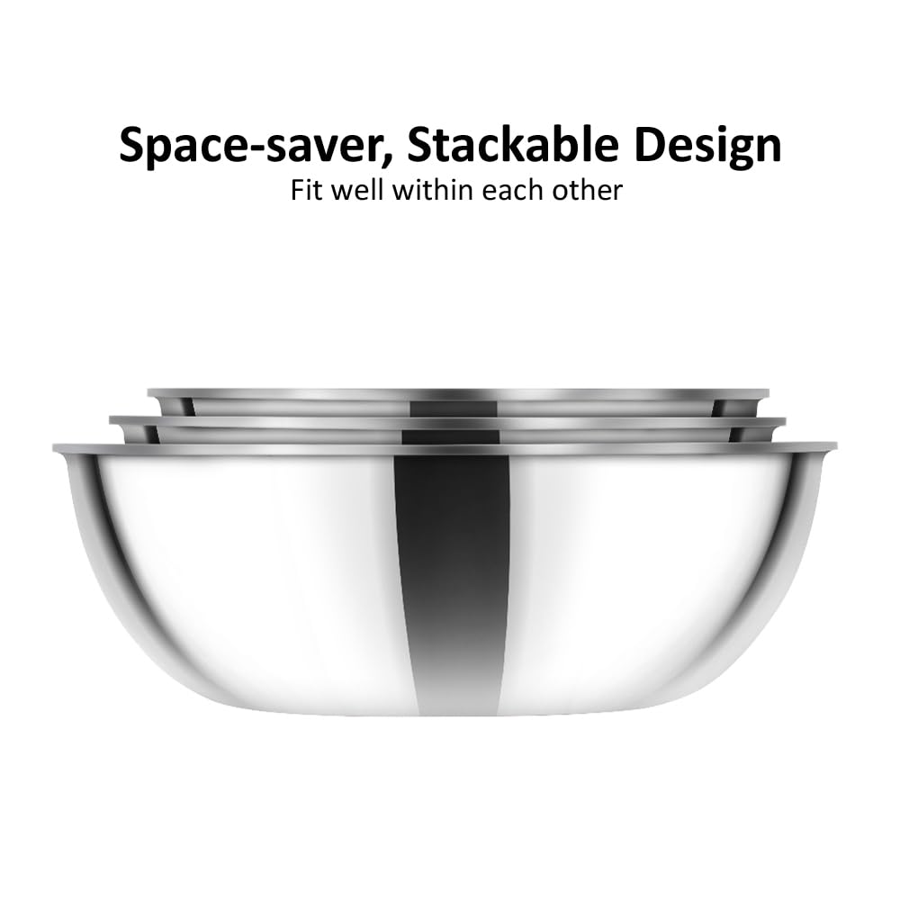 Stackable, space-saver design – fit into each other, frees up space in Modern Kitchens. If stacked in an inverted manner – safe from pests