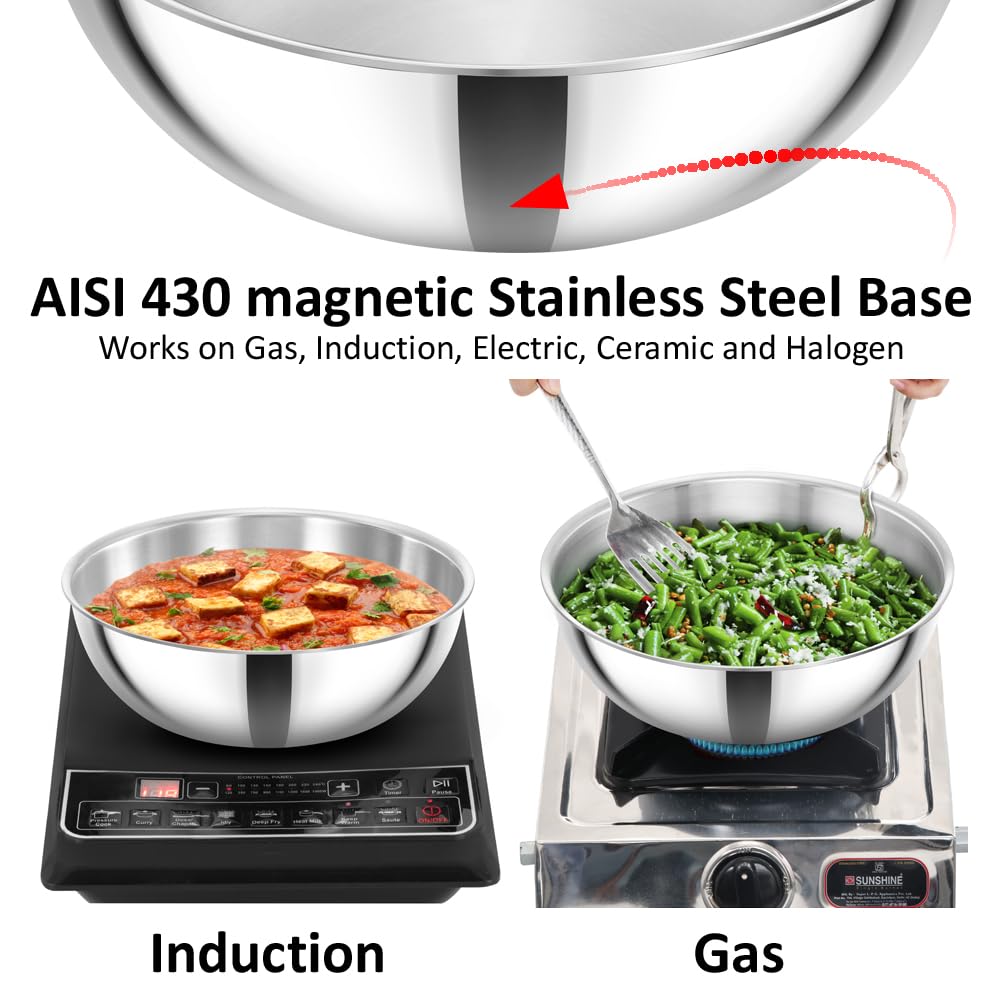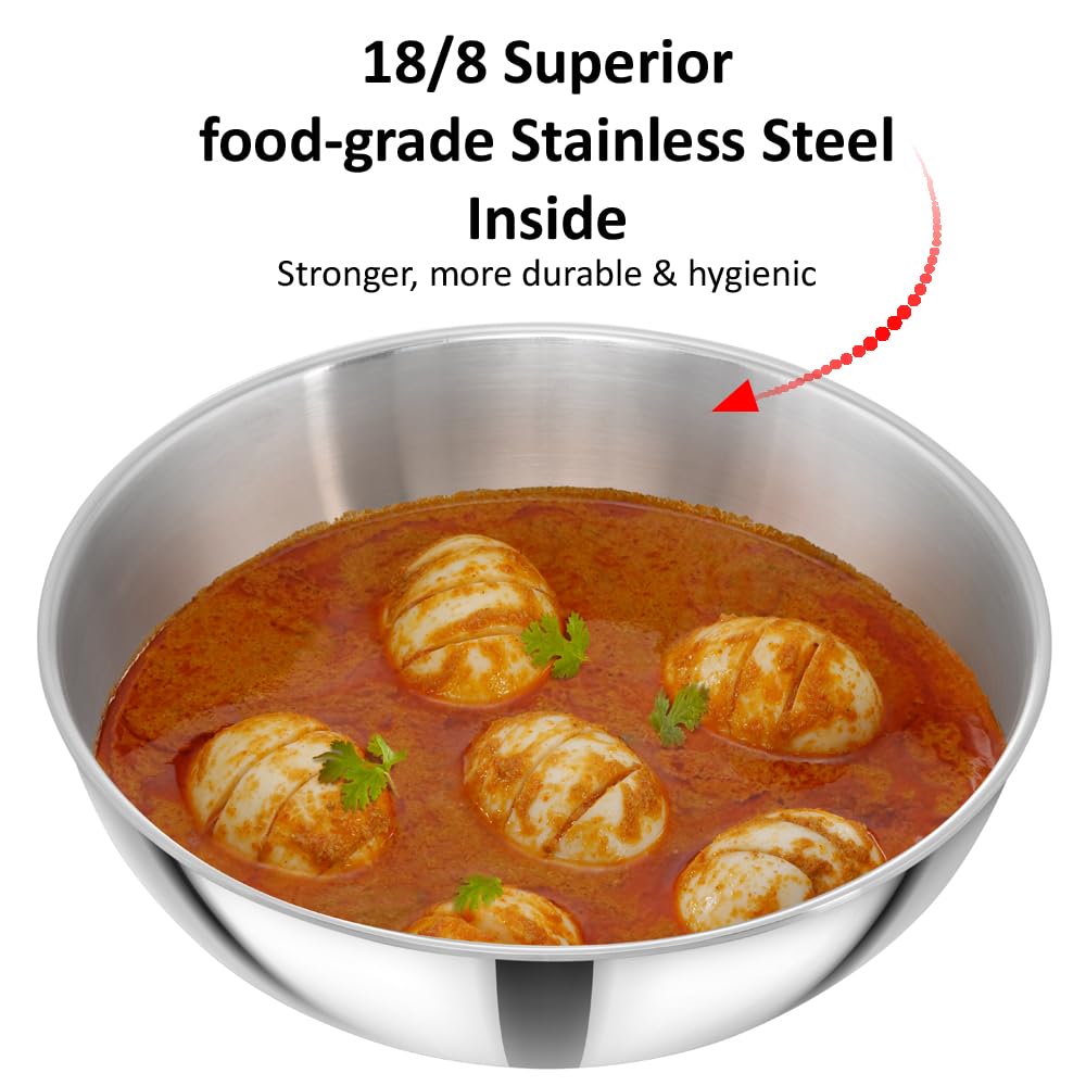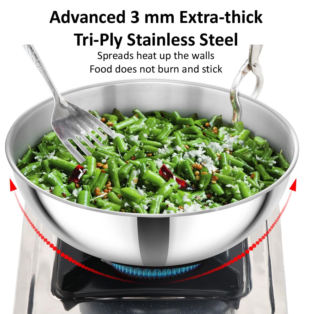 Advanced 3 mm Extra-thick Tri-Ply Stainless Steel – Spreads heat up the walls, food does not burn and stick