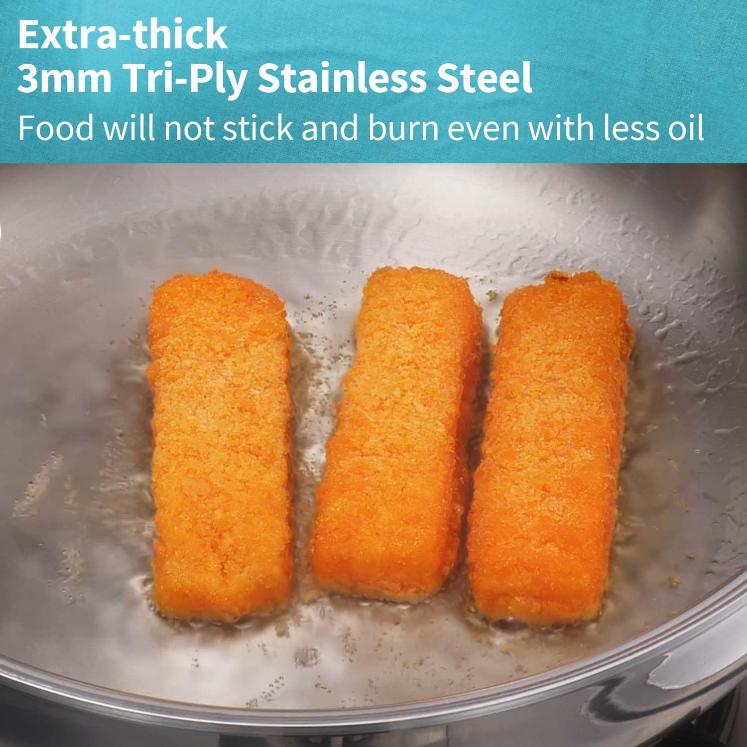 Extra-thick 3mm Tri-Ply Stainless Steel – Food will not stick and burn even with less oil