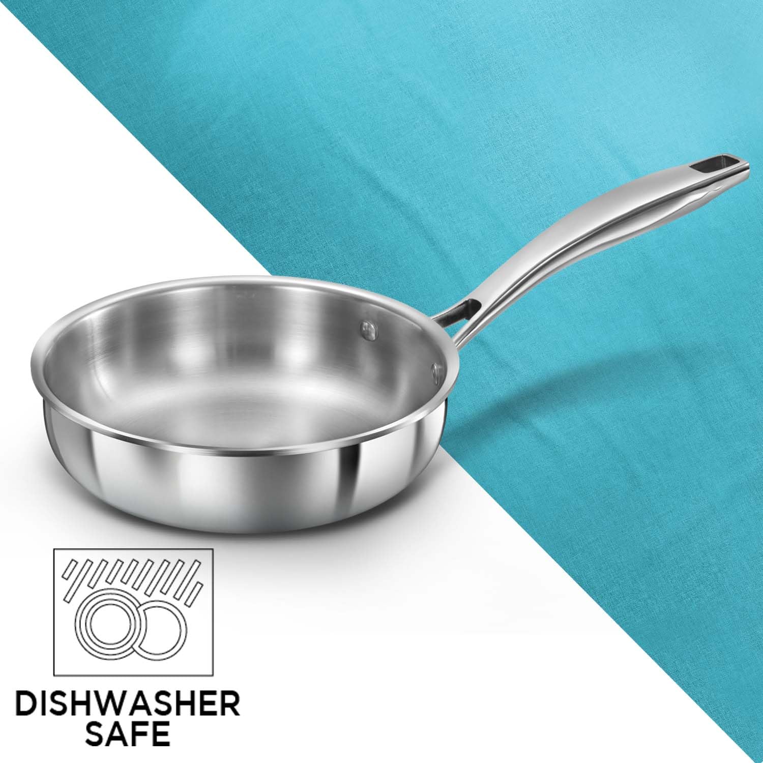 Hawkins Pro Triply Stainless Steel Frying Pan is engineered for professional-grade cooking performance, delivering exceptional results with every meal. Designed with comfort in mind, the stay-cool handle ensures a secure grip and comfortable handling, even when the pan is hot. With its premium construction, this frying pan prevents food from sticking and burning, even with minimal oil, thanks to its robust tri-ply stainless steel build. From gas stoves to induction cooktops and even the oven, this pan is versatile enough to adapt to various cooking methods. Built to last, the stainless steel rivets ensure that the pan remains sturdy and secure over time, eliminating concerns about loosening or instability. Enjoy hassle-free cleanup with this frying pan, as it’s dishwasher safe.