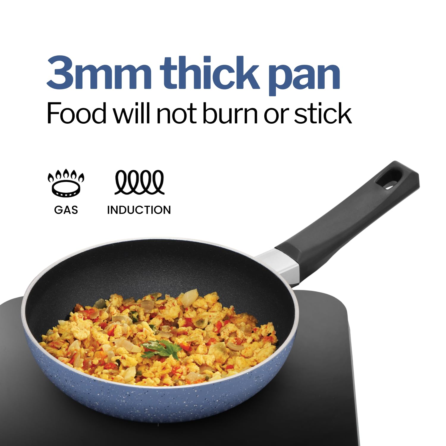 3mm thick pan – food will not burn or stick