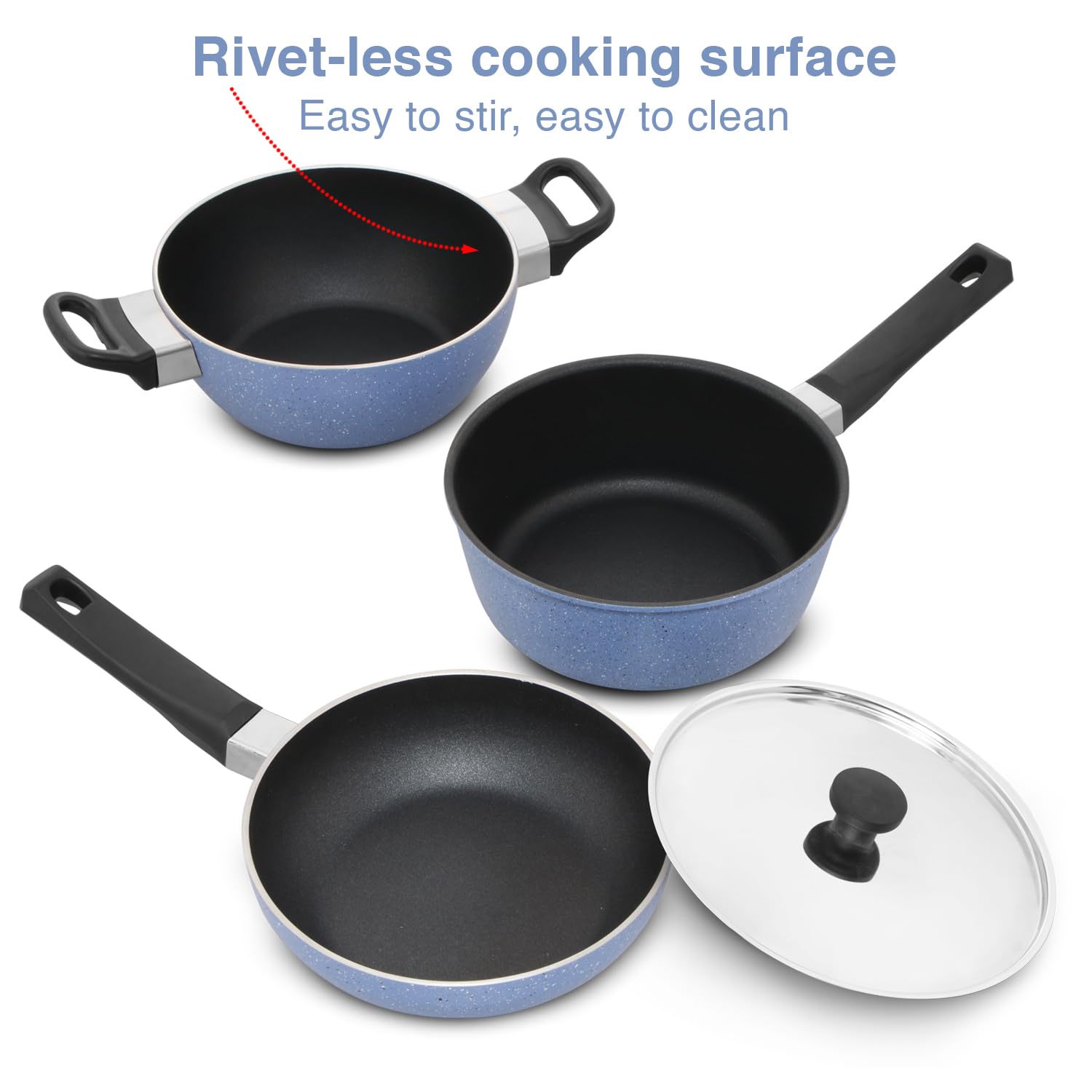 Rivet-less cooking surface – easy to stir, easy to clean