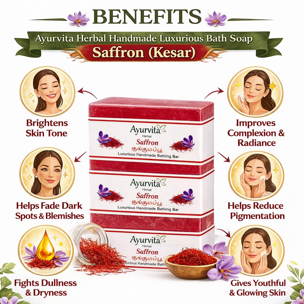 Sandalwood & Saffron Magic Soaps For Bath,Handmade Soaps For Glowing,Chandan & Kesar Bath Soap,Skin Natural & Paraben Free,Skin Brightening Soap For Men & Women (3)
