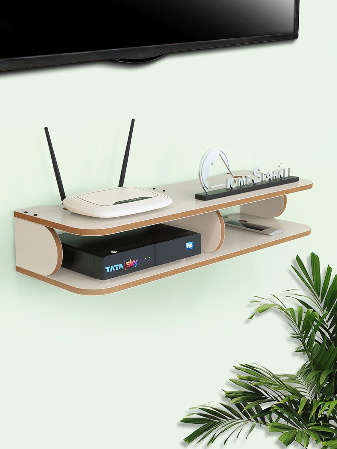 This Wall Mount Long Set top Box Holder adds a designer touch to your media center for tv unit stand. The contemporary, high-end designer look of this wall mounted media console/ wooden set top box stand / set top box holder will free up space and give your living room a light, airy look. Multiple open storage spaces, you’ll have space for all of your A/V devices – Four open spaces on the front with adjustable shelves that can house all of your electronics and a hole in the back that will help you organize all of their cords. In addition, each item’s size and shape allow it to fit neatly in your studio, apartment, Loft or home office. This is a multipurpose wall shelf that can be used as wall set top box stand, set top box holder, wifi stand, game console stand, speaker stand, speaker holder, tv entertainment unit stand and other purposes to hold small objects (not for heavy objects) like home decor items, showpieces, etc. Thus a Perfect set top box holder / setup box stand for home wall and for your living room. They are available in 4 colours – Light Brown, Dark Brown, Black and White. Dimension – L : 22.5 x W: 7.5 x H: 4 (inches)