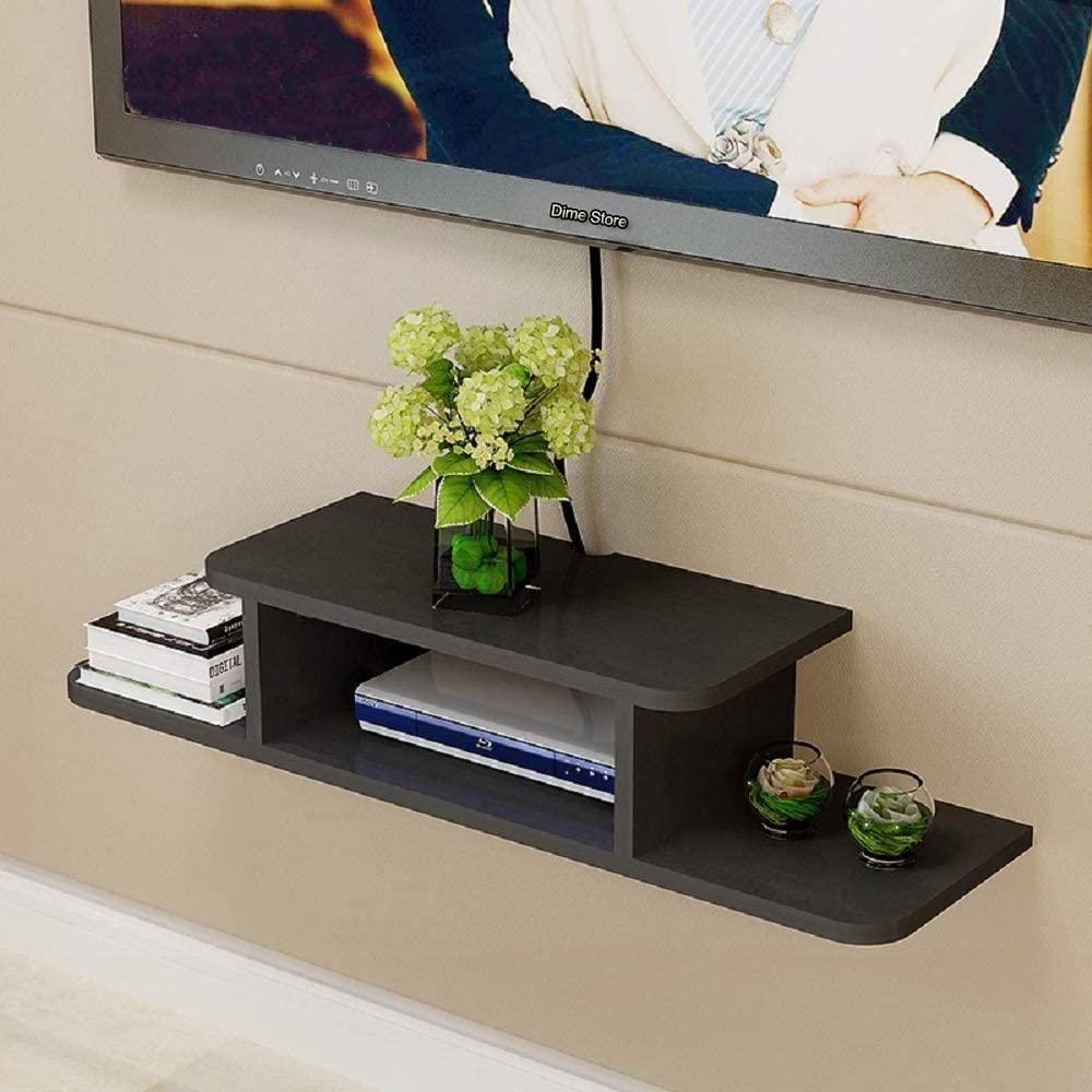 Home Wood WiFi Router Holder Wooden Wall Shelves | Setup Box Stand for Home | Wall Mount Stylish WiFi Router Holder TV Cabinet Living Room Furniture Stylish Entertainment unit with solid finish has enough space to fit all your entertainment gadgets such as set-top-box, speakers, and lots more. The TV cable can be passed through this cable hole, and the bottom board also has a cable hole, which is convenient and practical. QUICK SETUP & EASY CLEANING. This wall-mounted TV Stand Cabinet is perfect for holding TV components, game accessories, books and decorations. EASY TO INSTALL: It comes with an instruction manual to assist with quick setup. The detailed instructions help in the easy installation and removal of your walls within a couple of minutes. Each pack includes all the set of tools needed to complete the installation.