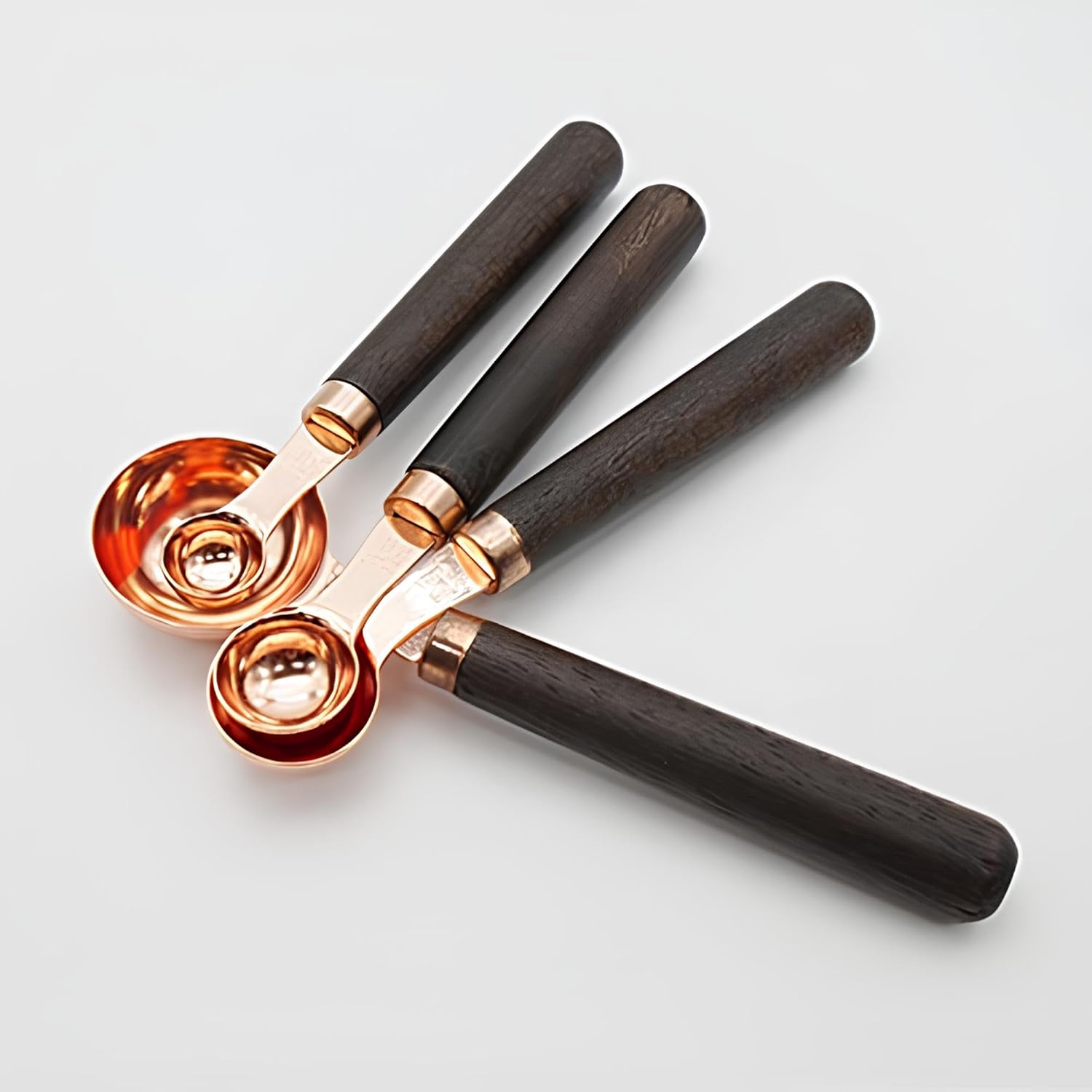 Copper painted measuring cups and spoons give a classy and premium look to your kitchen. Longer wooden handles for easy handling of the spoons and cups. Measure dry or liquid liquid ingredients for your for cooking and baking and make dishes in perfect taste all the time!