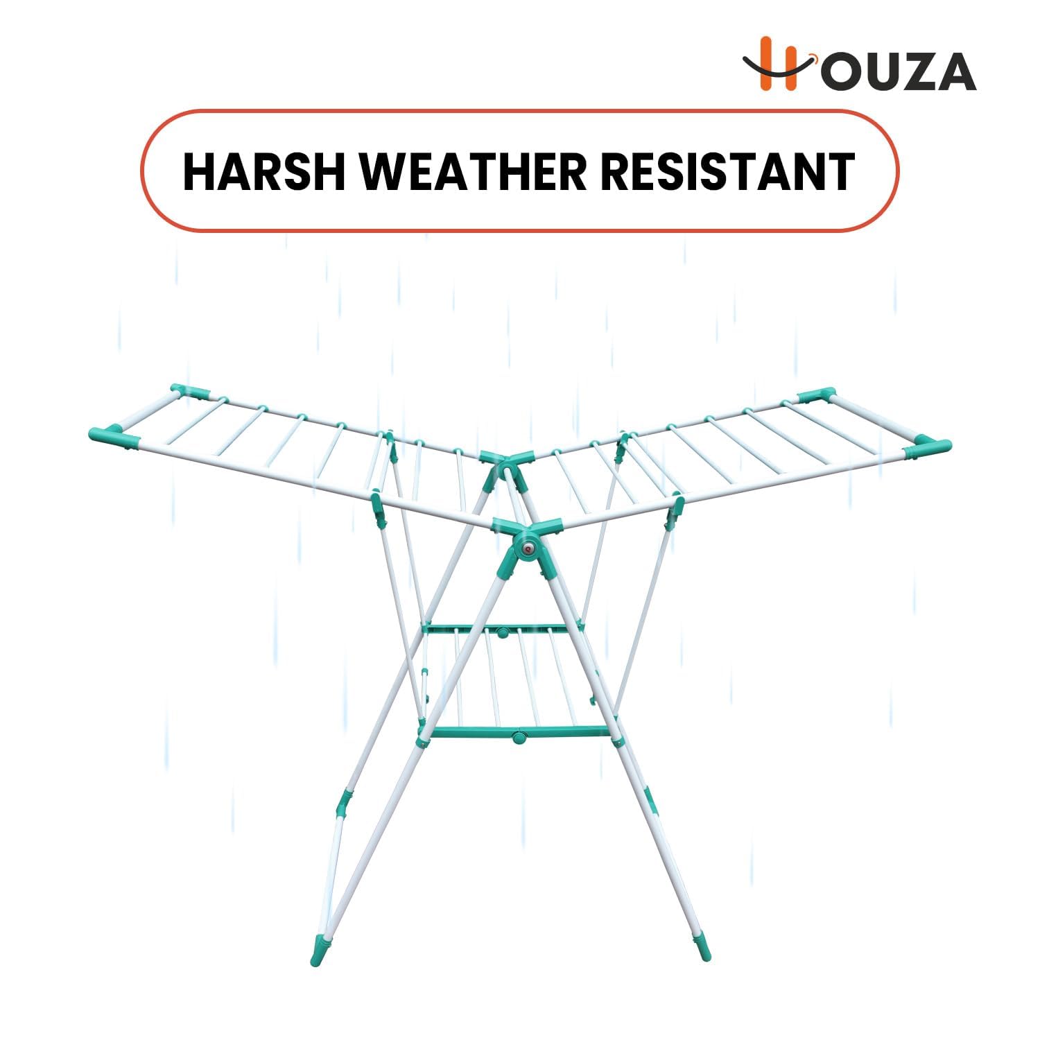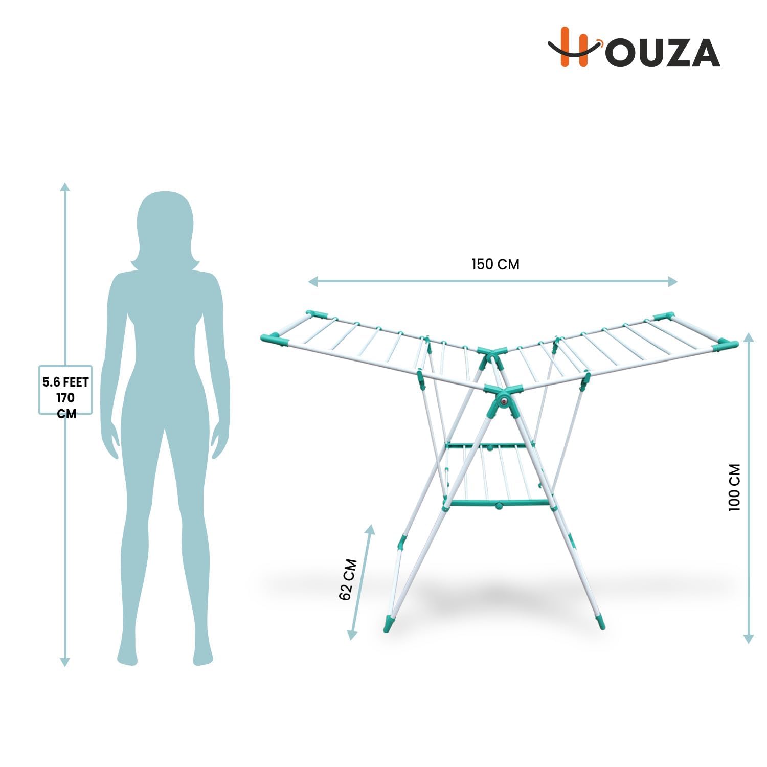 Upgrade your laundry routine with the HOUZA eagle-shaped floor cloth dryer stand, designed for both indoor and outdoor use. Made from sturdy steel, this versatile rack offers durability, stability, and ample hanging space to keep clothes neatly organised. Its foldable design saves space, while a built-in shoe stand adds extra convenience. Ideal for apartments, balconies, or utility areas, the HOUZA stand ensures better airflow for faster drying. When not in use, simply fold it away until the next laundry day.