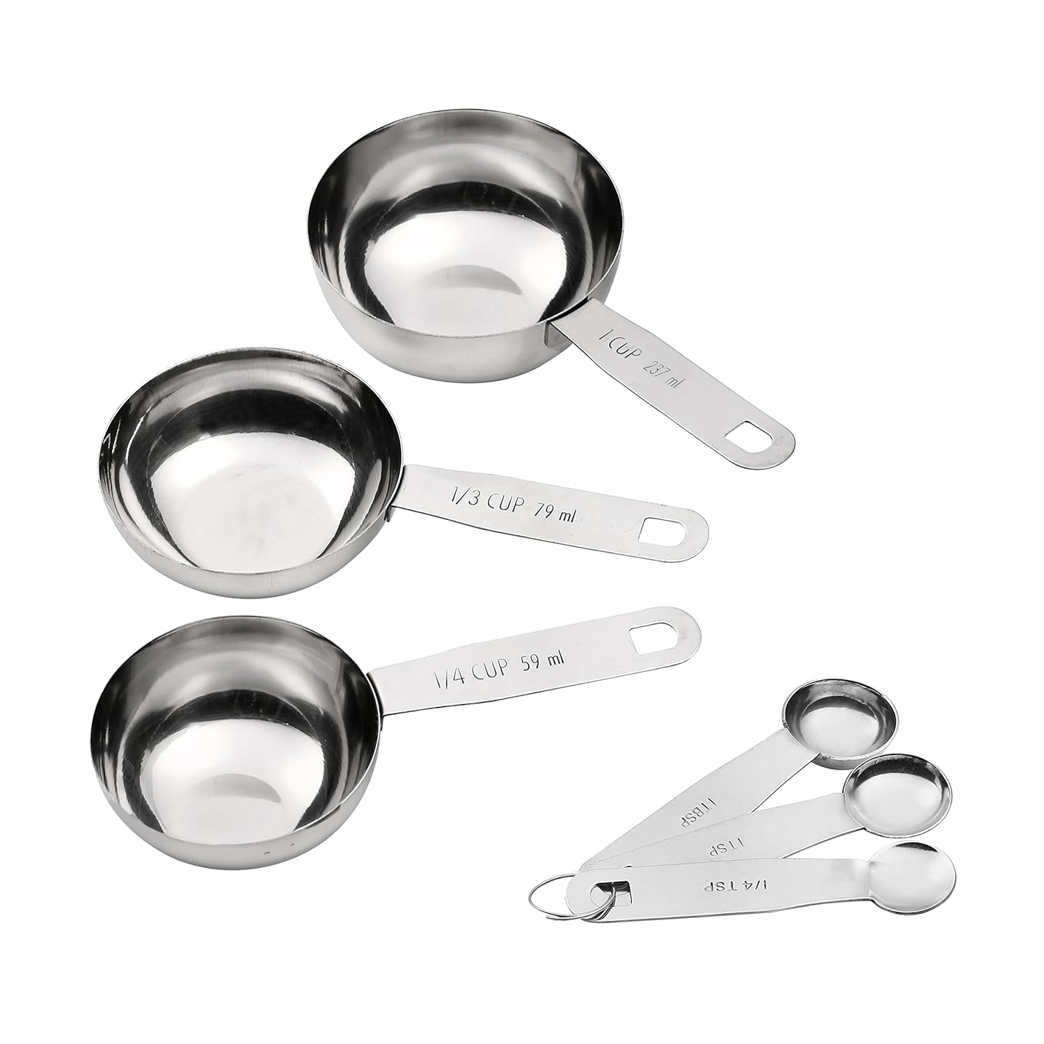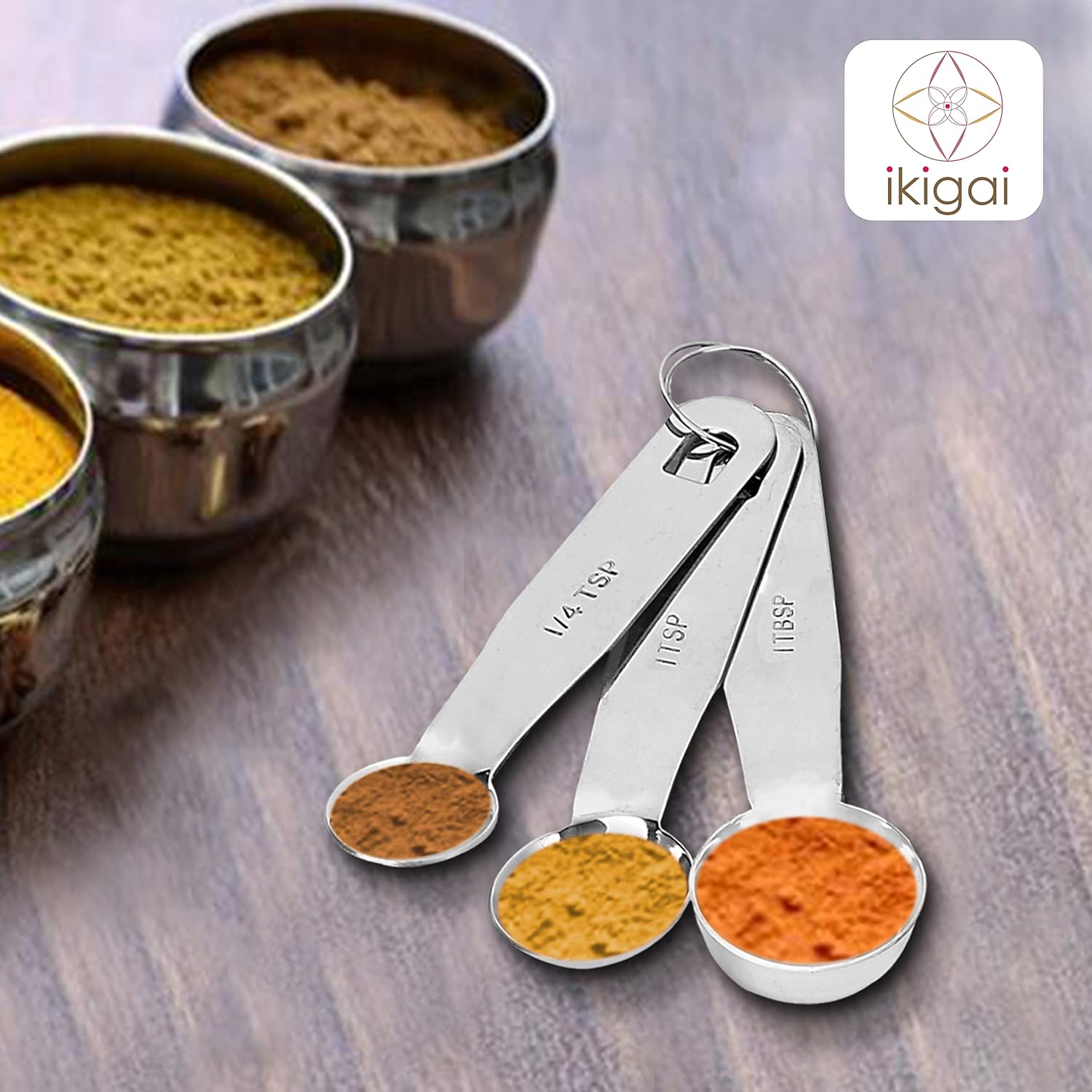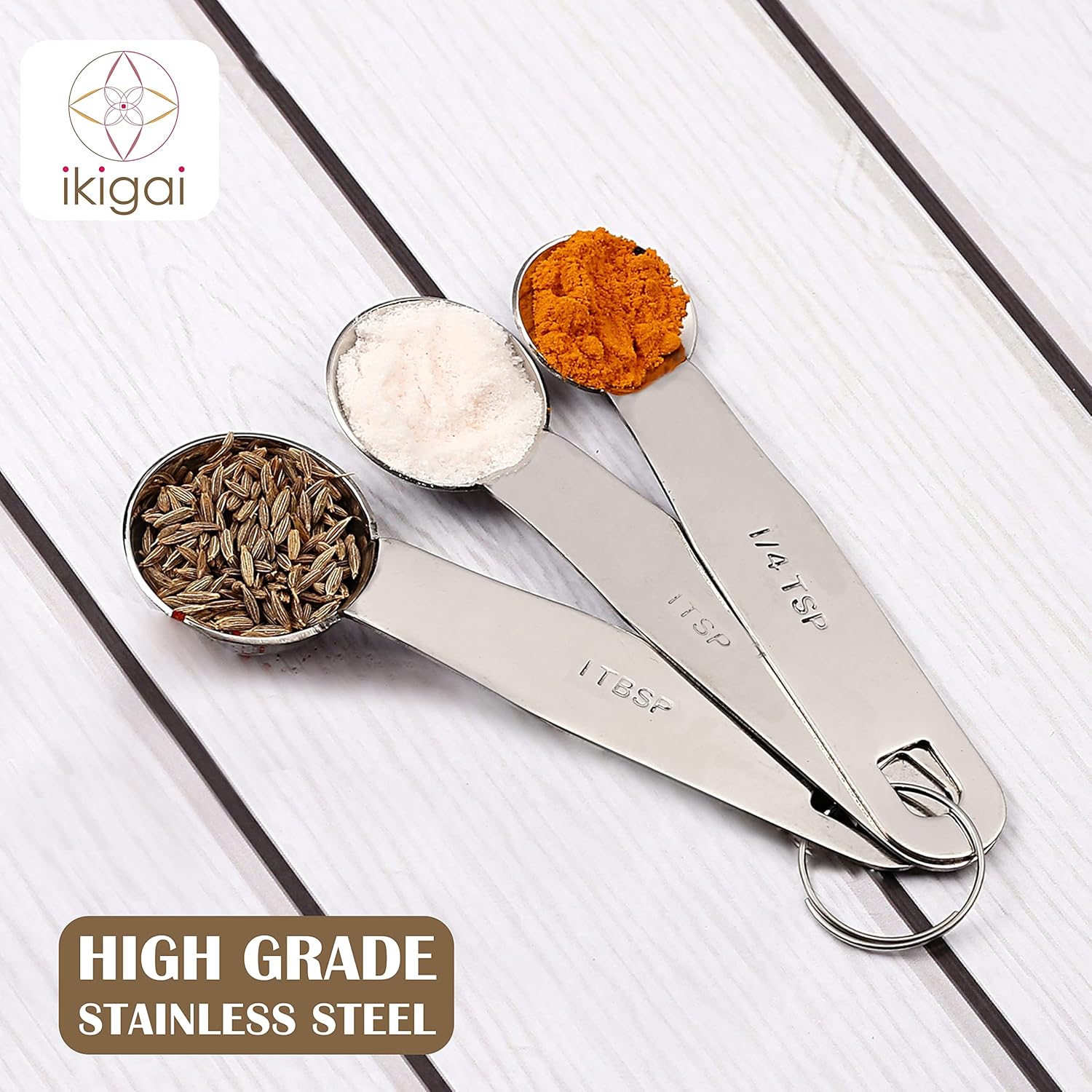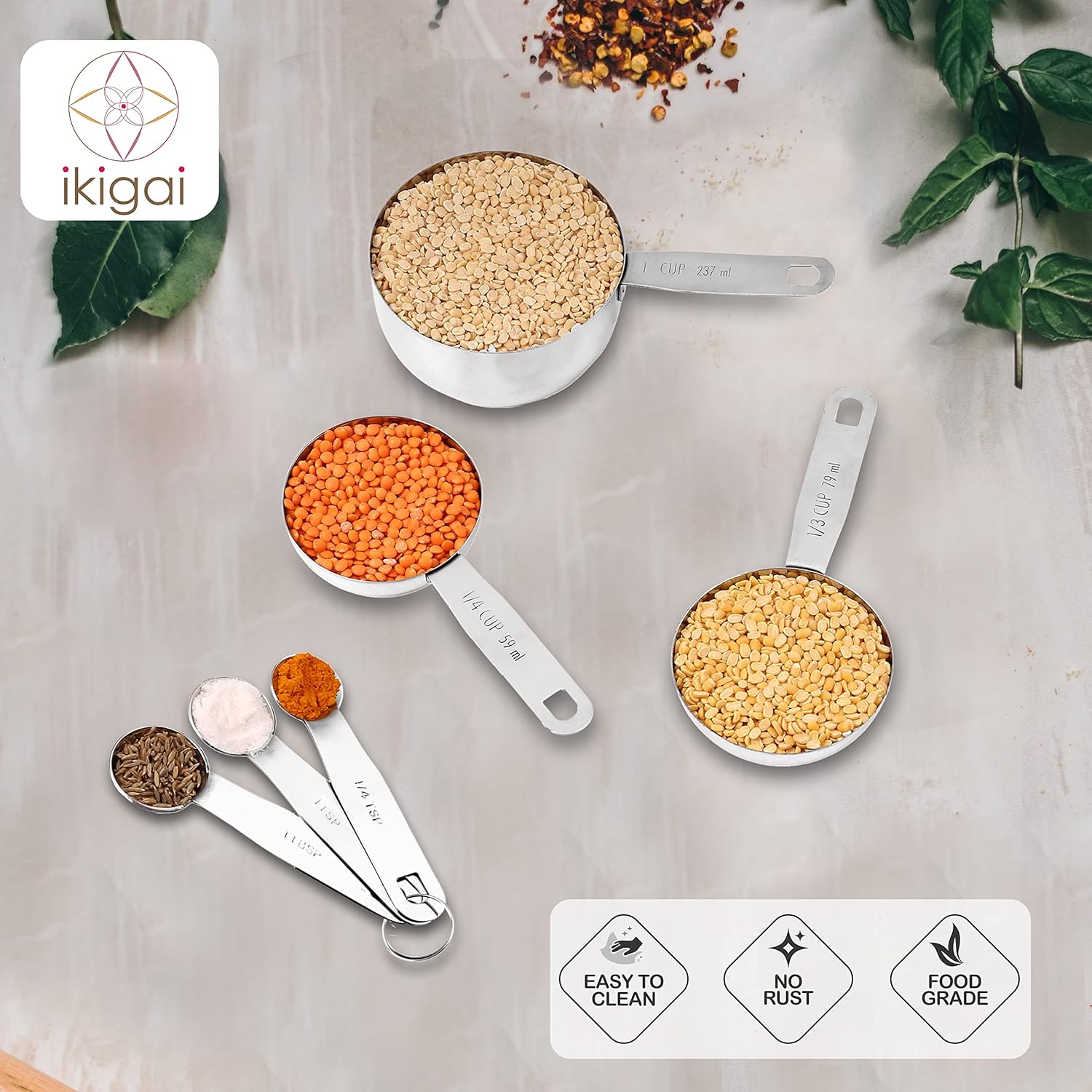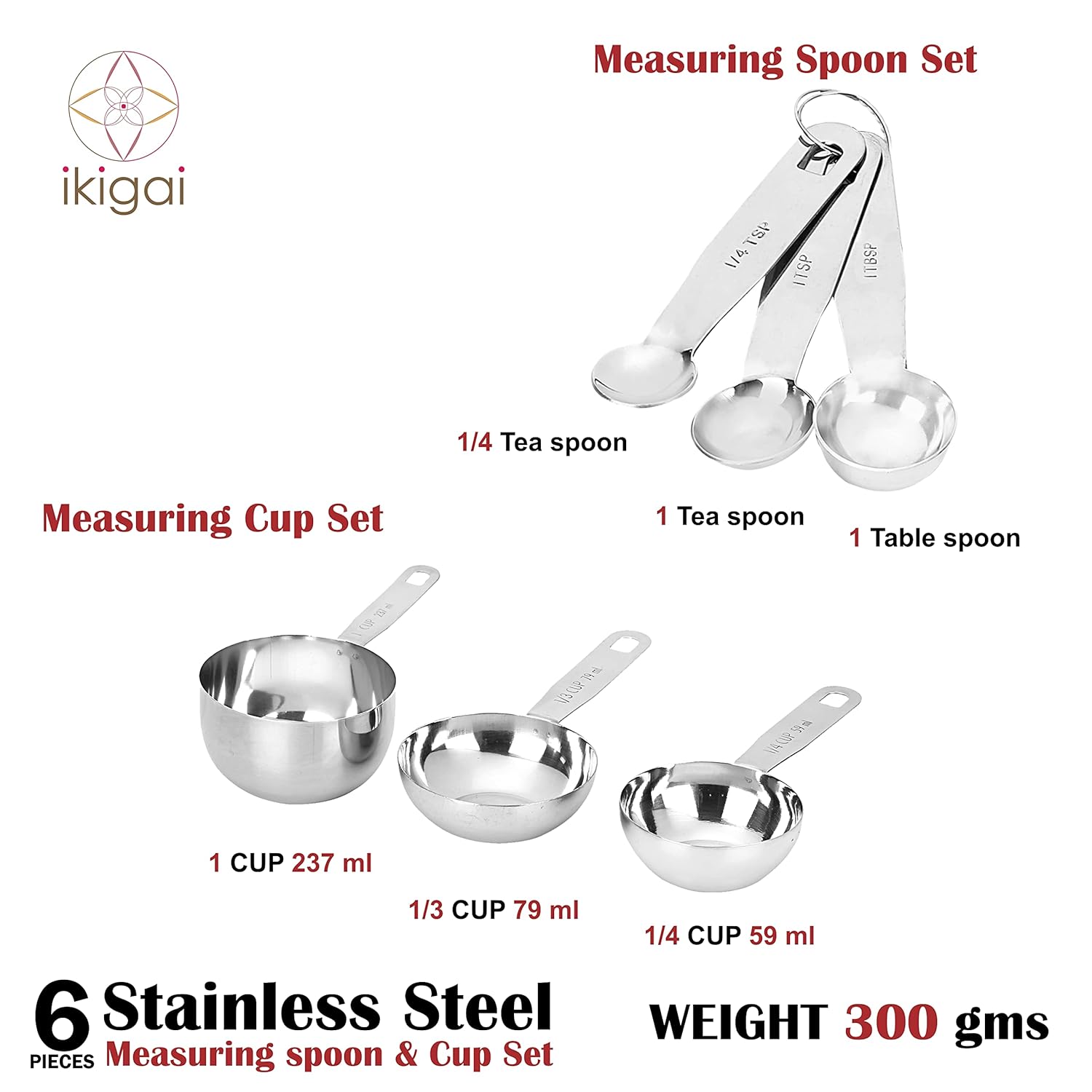Home Accessories IKIGAI Stainless Steel Measuring Cup and Spoon Set of 6. 3 Measuring Cups & 3 Measuring Spoons for Dry and Liquid Ingredients in Kitchen Cooking/Baking