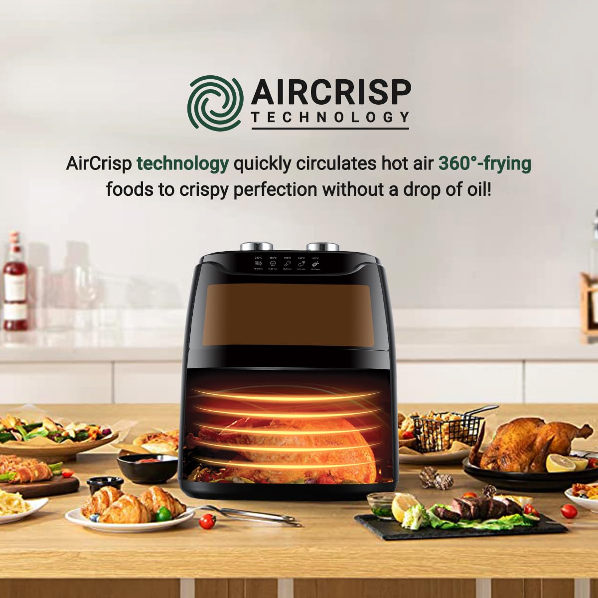 USER FRIENDLY & SAFETY FEATURES: our user-friendly Air fryer product that puts you in control with just a few effortless and cool Touch Handle . Air fryer comes with Smoke Vent For absorbing unwanted odour and smoke