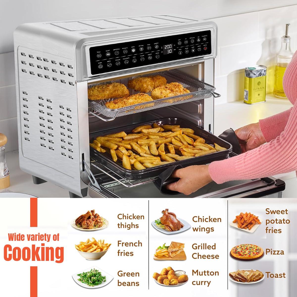 LARGE CAPACITY: The 23L air fry oven gives you the advantage of cooking for a large family at once. All in one compact appliance that cooks more for family meals, parties & gatherings while taking up less countertop space capacity.