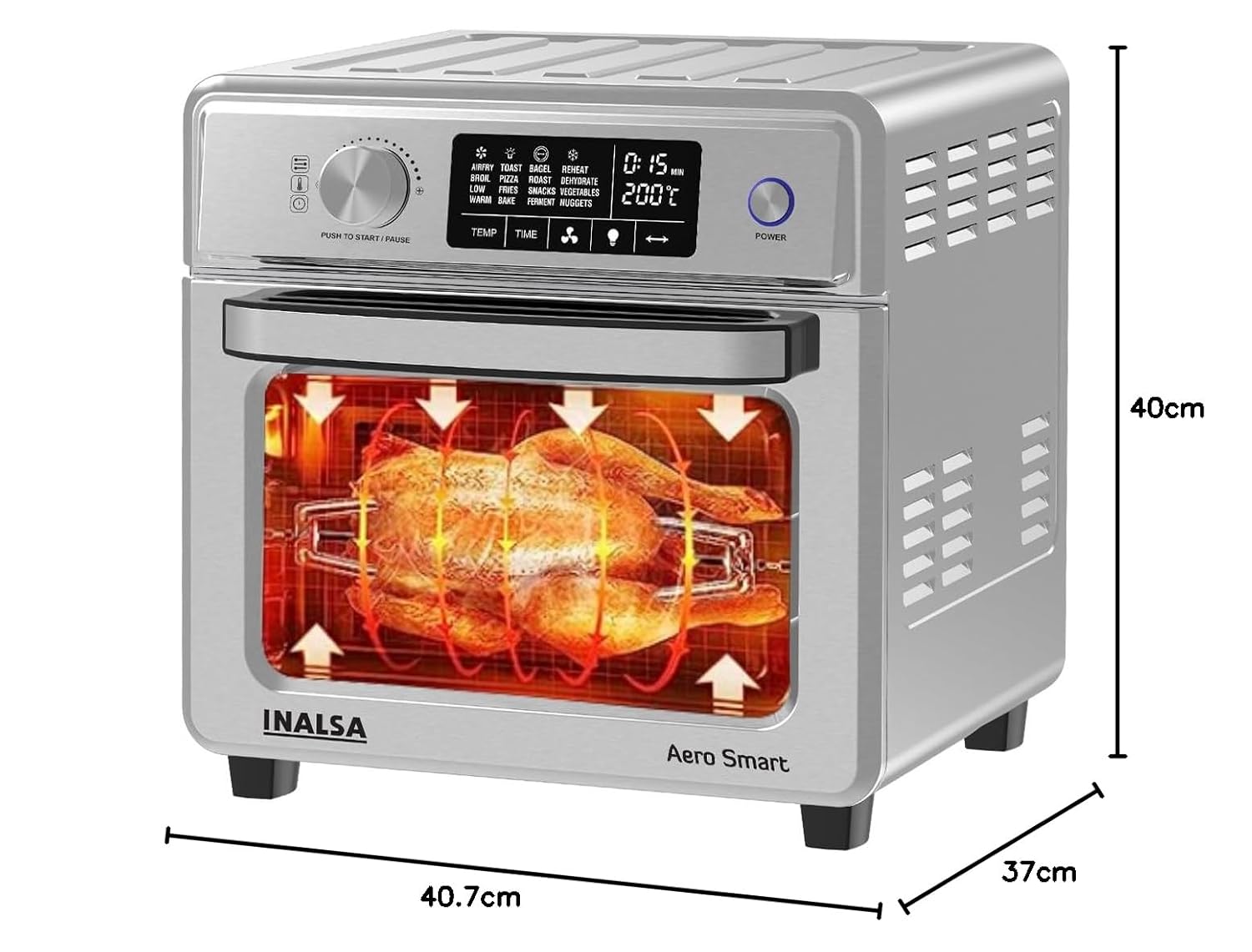 HEALTHY, FAST, POWERFUL: Its 1700W strong Power makes it super-Efficient to cook food in the Healthiest way by cutting over 85% of fats. Equipped with a large glass viewing window and inner illuminated cooking chamber, make it easy to monitor cooking progress. Brushed Stainless Steel exterior enhances any kitchen decorate.