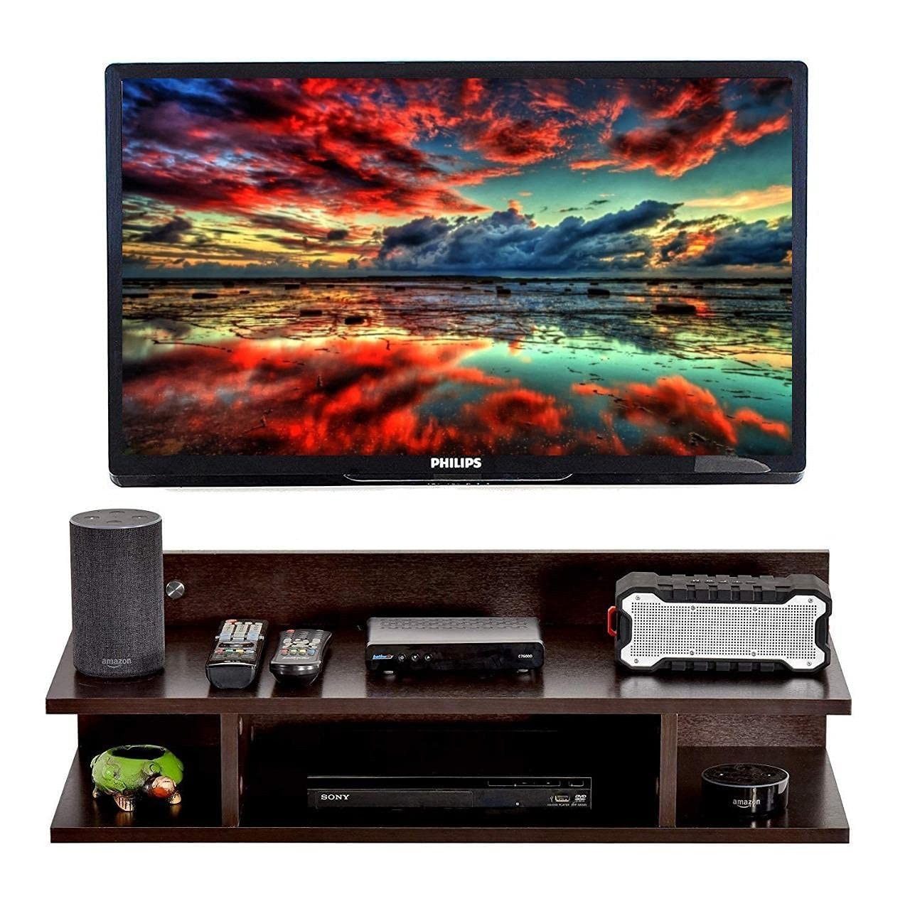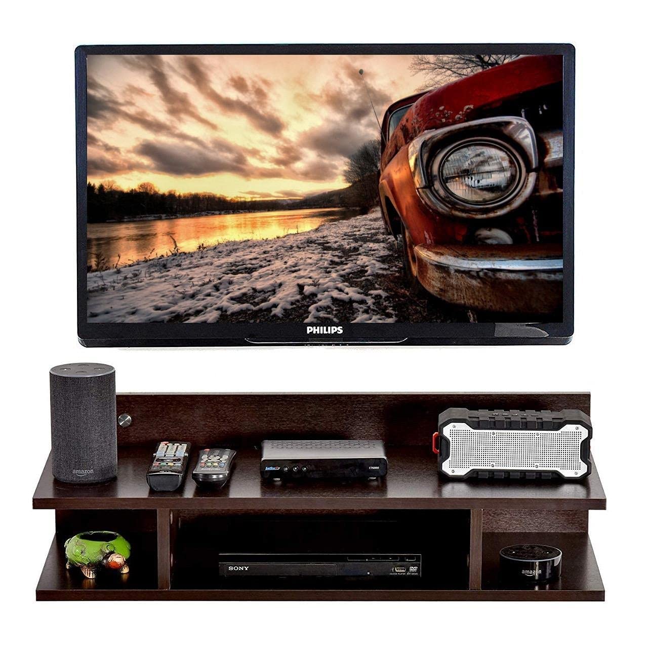 Home Furniture Incredible Artifacts MDF Set top Box Stand | WiFi Router Holder MDF Wooden Wall Shelves | Setup Box Stand for Home | Wall Mount TV Cabinet for Living Room, Home Decor, Living Decor (Brown)