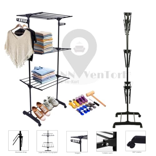Three-Tier Design The innovative three-tier design maximizes drying space, allowing you to dry multiple garments simultaneously. This vertical layout efficiently utilizes space, making it an ideal choice for balconies, laundry rooms, or any area with limited space. Each tier provides ample room for a variety of clothes, including heavy garments, delicate fabrics, and accessories, ensuring that all your drying needs are met.