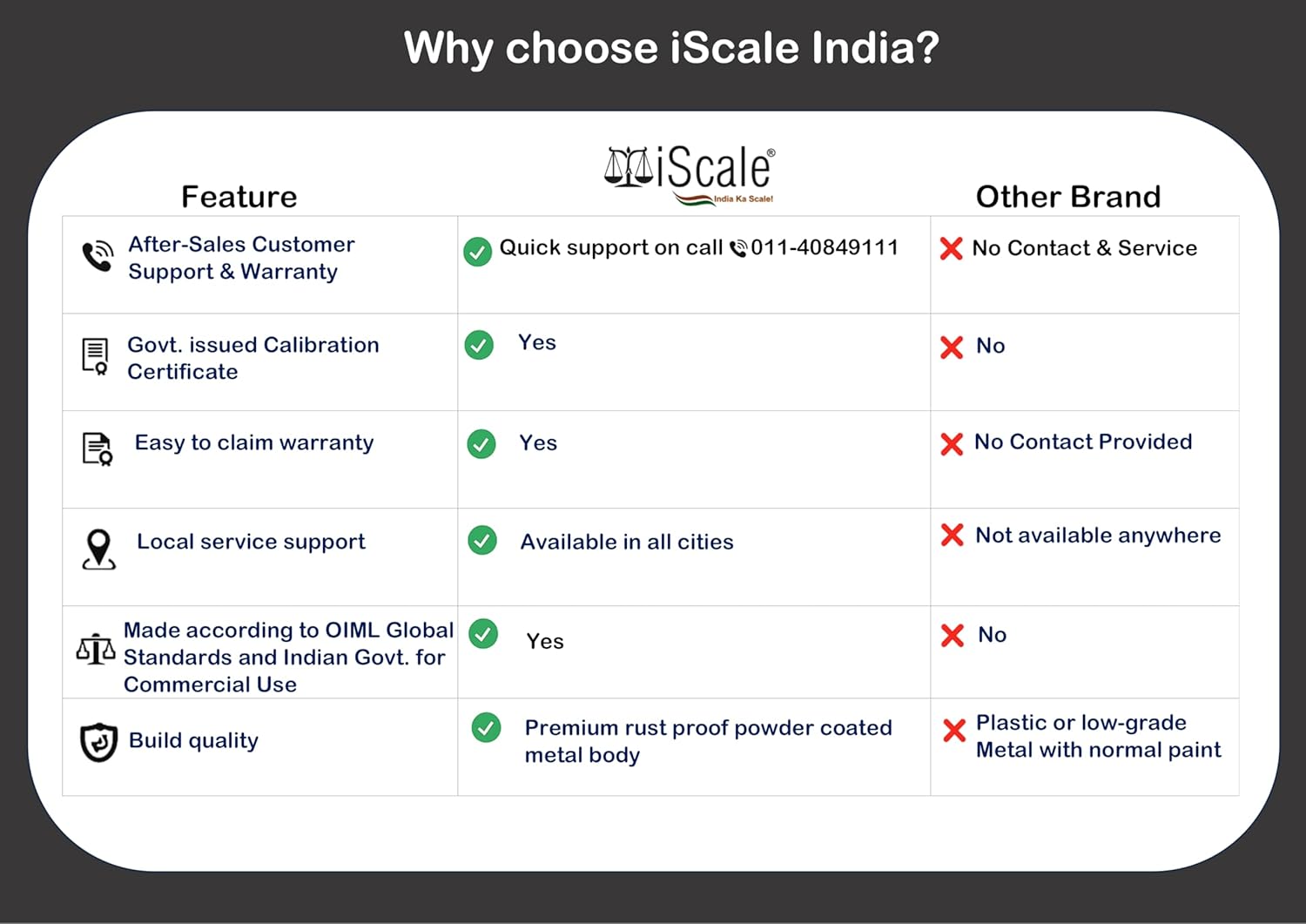 With over 50 years of experience, we are India’s largest commercial-scale brand from the BNPN group. Thousands of businesses countrywide rely on our government-backed models, which satisfy global OIML R76 criteria. With India’s largest selection of commercial scales, we provide global-standard precision at accessible value. Our swift virtual and physical after-sales service ensures dependability beyond the point of sale.