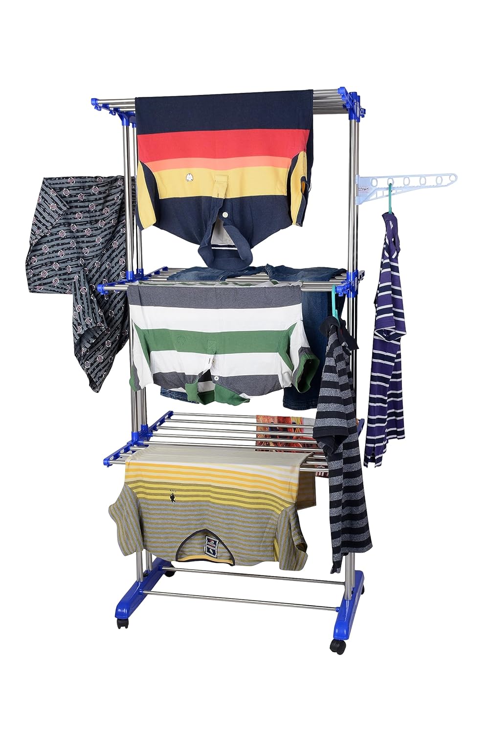 LIVINGBASICS 3 Tier Premium Heavy Duty Stainless Steel Foldable Cloth Drying Stand/Clothes Stand for Drying/Cloth Stand/Clothes Dryer/Laundry Racks for Drying – Indoor/Balcony (Cyan Blue)