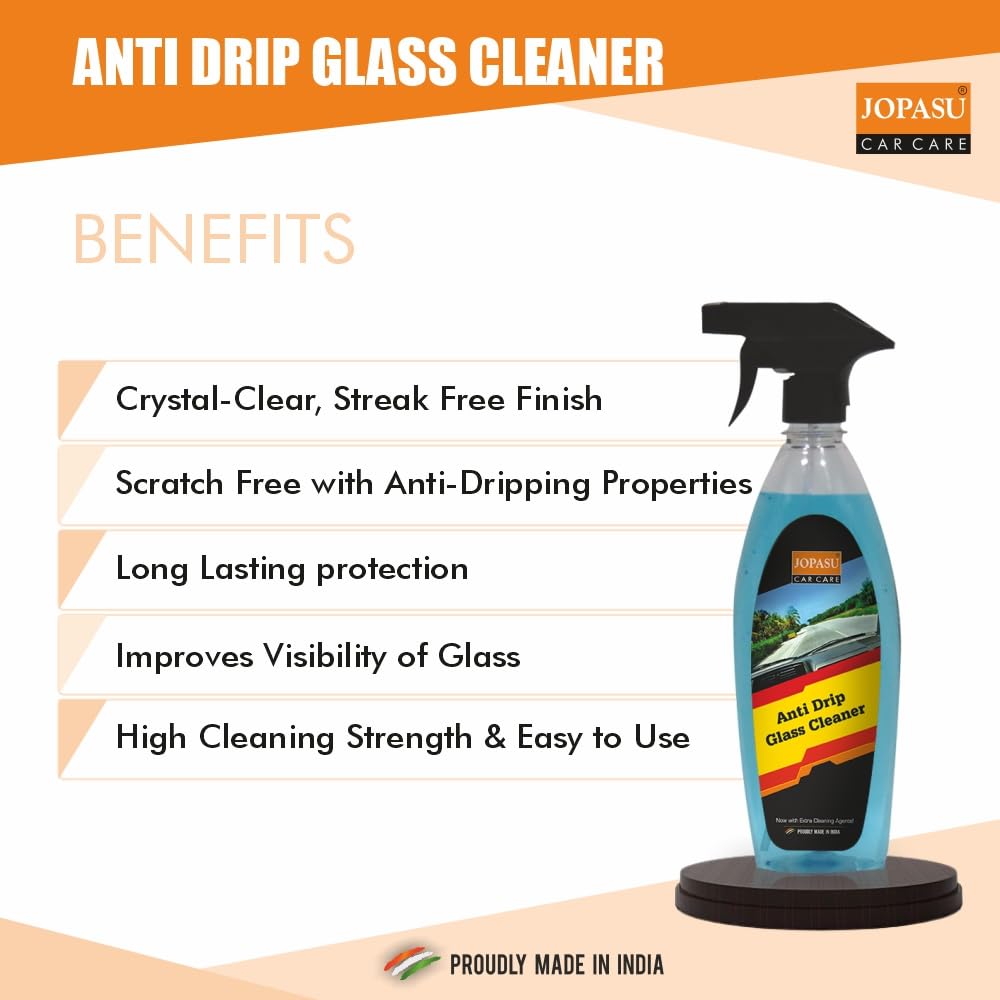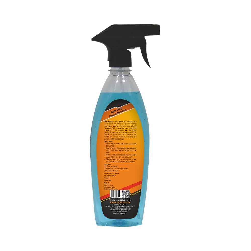 Anti-Drip Glass Cleaner is a quick spray on, dweller, wipe off cleaner for glass, mirrors, acrylic and plastic windows. This unique formula resists the dripping of the solution on the glass, giving more time to react on the dirt. It results in quick removal of road grime, traffic film, insect remains, tree sap, oil, grease and bird droppings.
