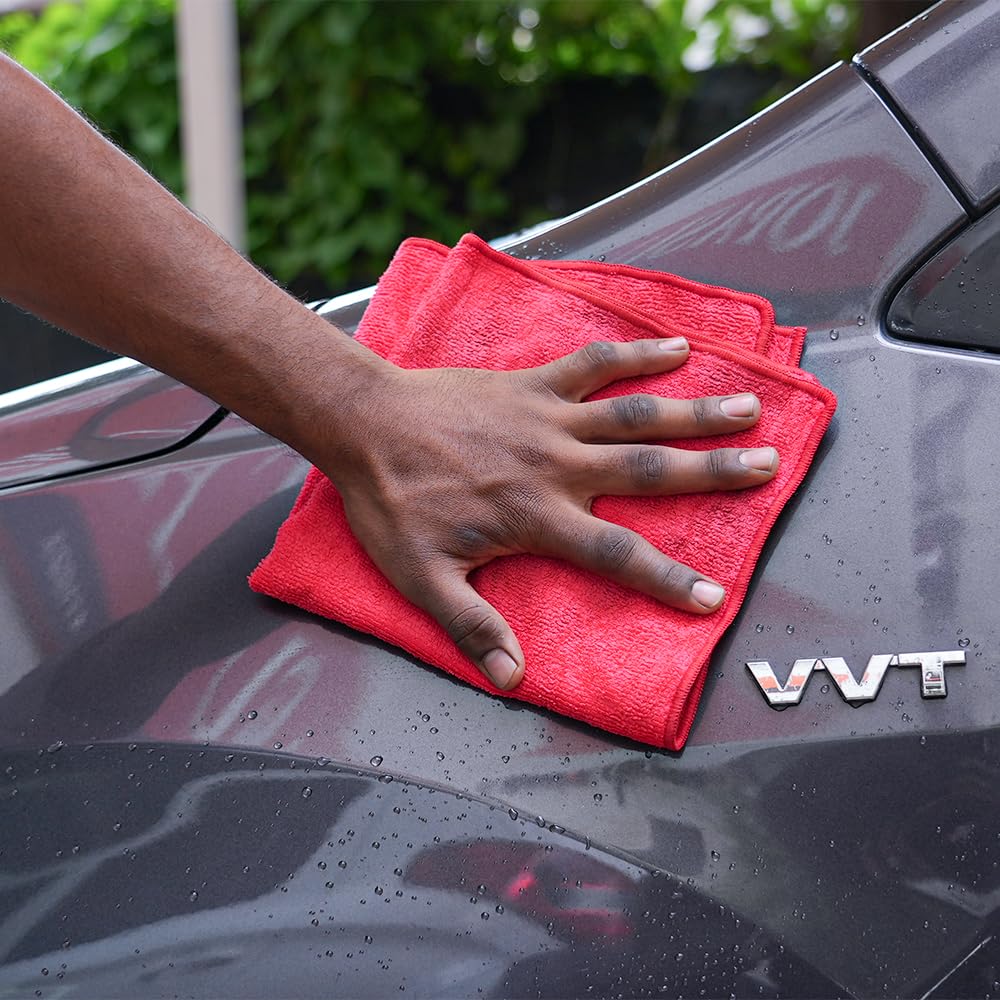 A 16â€x16†incredibly plush microfibre in approximately 320 g/m2 chamois features a revolutionary microfibre technology (blend of 80/20 ratio of polyester/polyamide (Nylon) that effectively removes moisture from the surface without scratching or streaking it. This is suitable for all surfaces, such as glass, plastic, paintwork, wood, chrome, etc. because of its high water absorption and retention. This polishing cloth is the #1 choice for enthusiasts everywhere.The pack consist of three red microfibre..