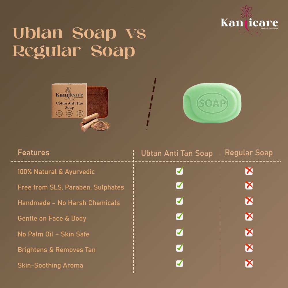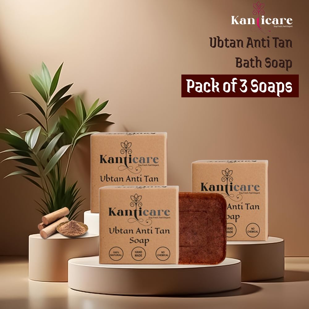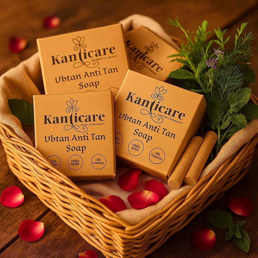 Ayurvedic Anti-Tan Formula: Enriched with natural herbal ubtan powder, this soap gently removes tan, dirt, and impurities while improving skin tone for a radiant glow.
