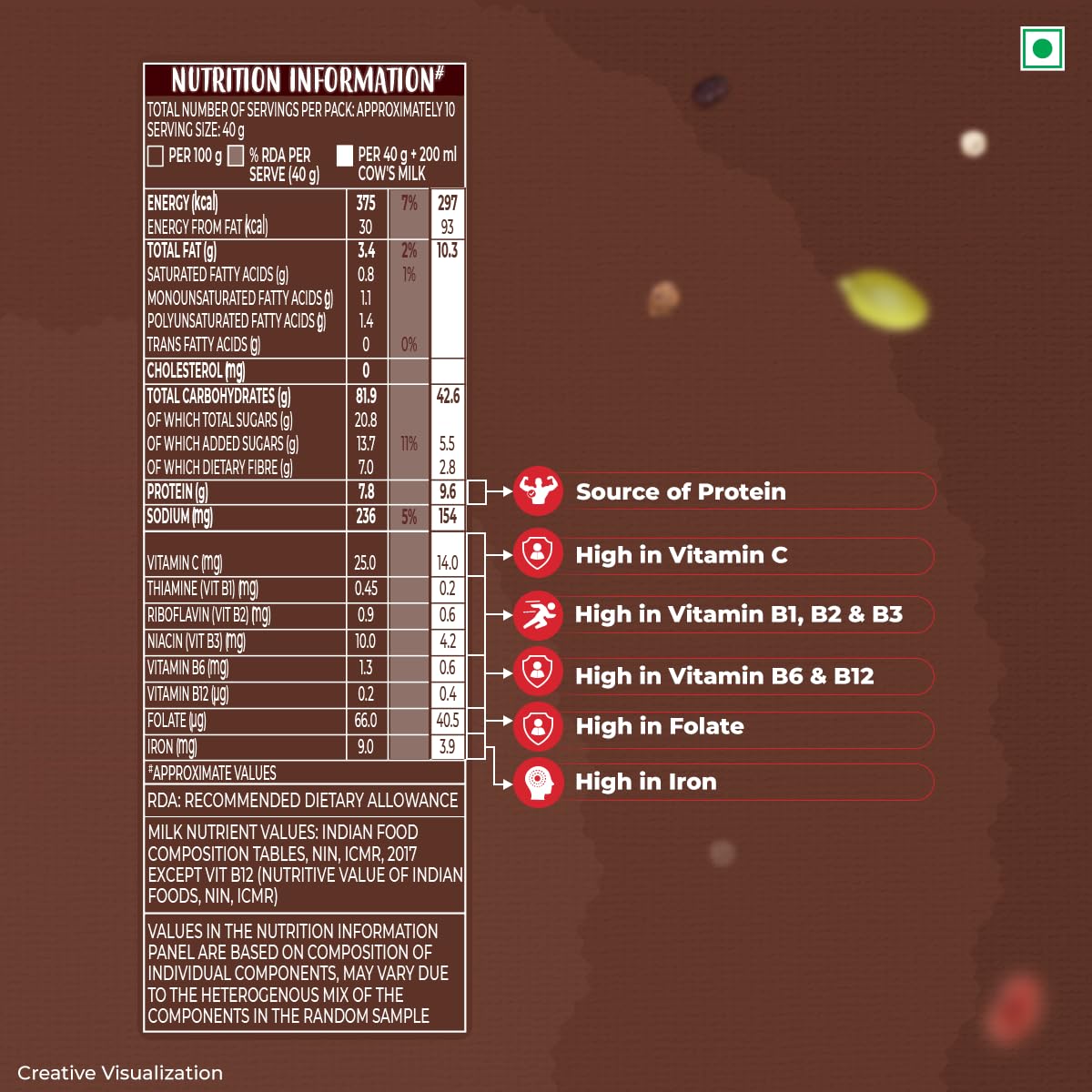 India’s No.1 Muesli now comes in a millet-powered, chocolatey blend of powerful ingredients. This muesli has wheat, corn, rice, barley, ragi, rolled oats, and jowar, giving you a wholegrain crunch. This is paired with cranberries, black currants, and pumpkin seeds to make it super yummy and nutritious!