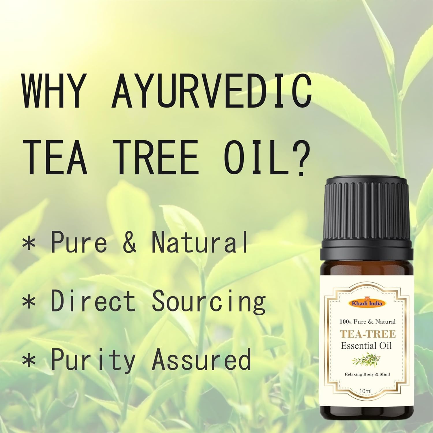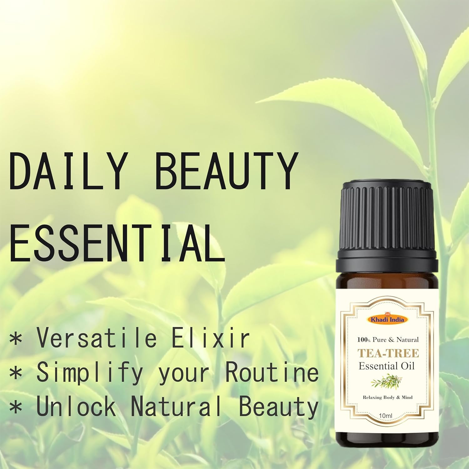100% pure tea tree essential oil for skin and hair care: Natural, unrefined, steam distilled oil from organically grown leaves of tea tree, with no added chemicals, artificial fragrances, additives or preservatives