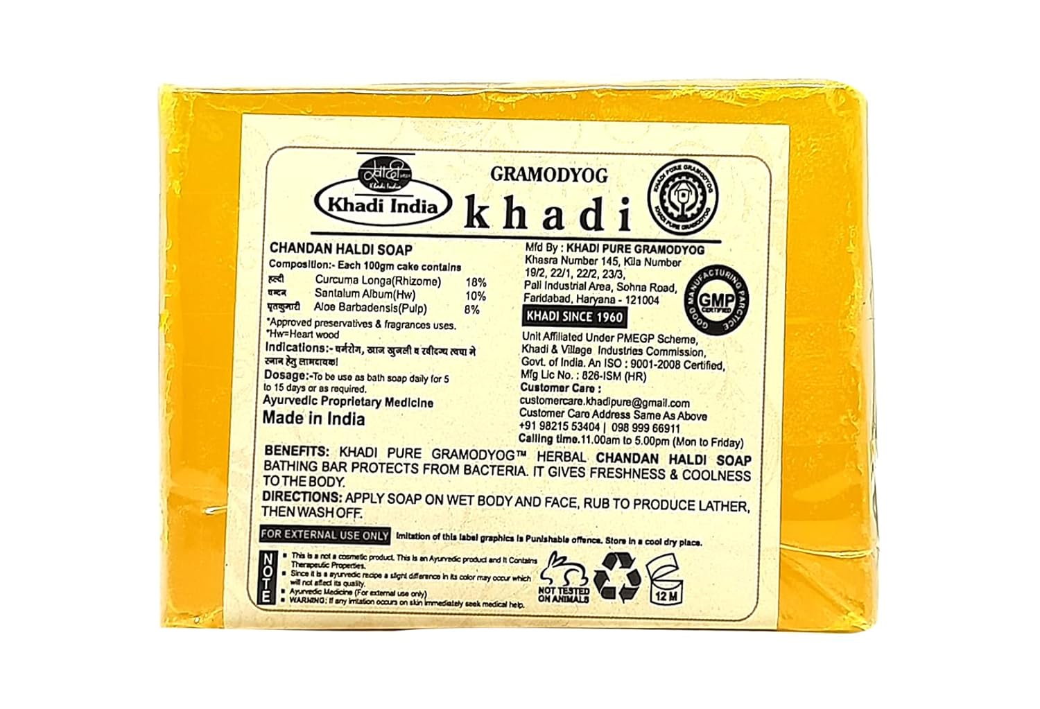 Khadi Pure Herbal Chandan Haldi Soap bathing bar protects from bacteria. It gives freshness & coolness to the body.