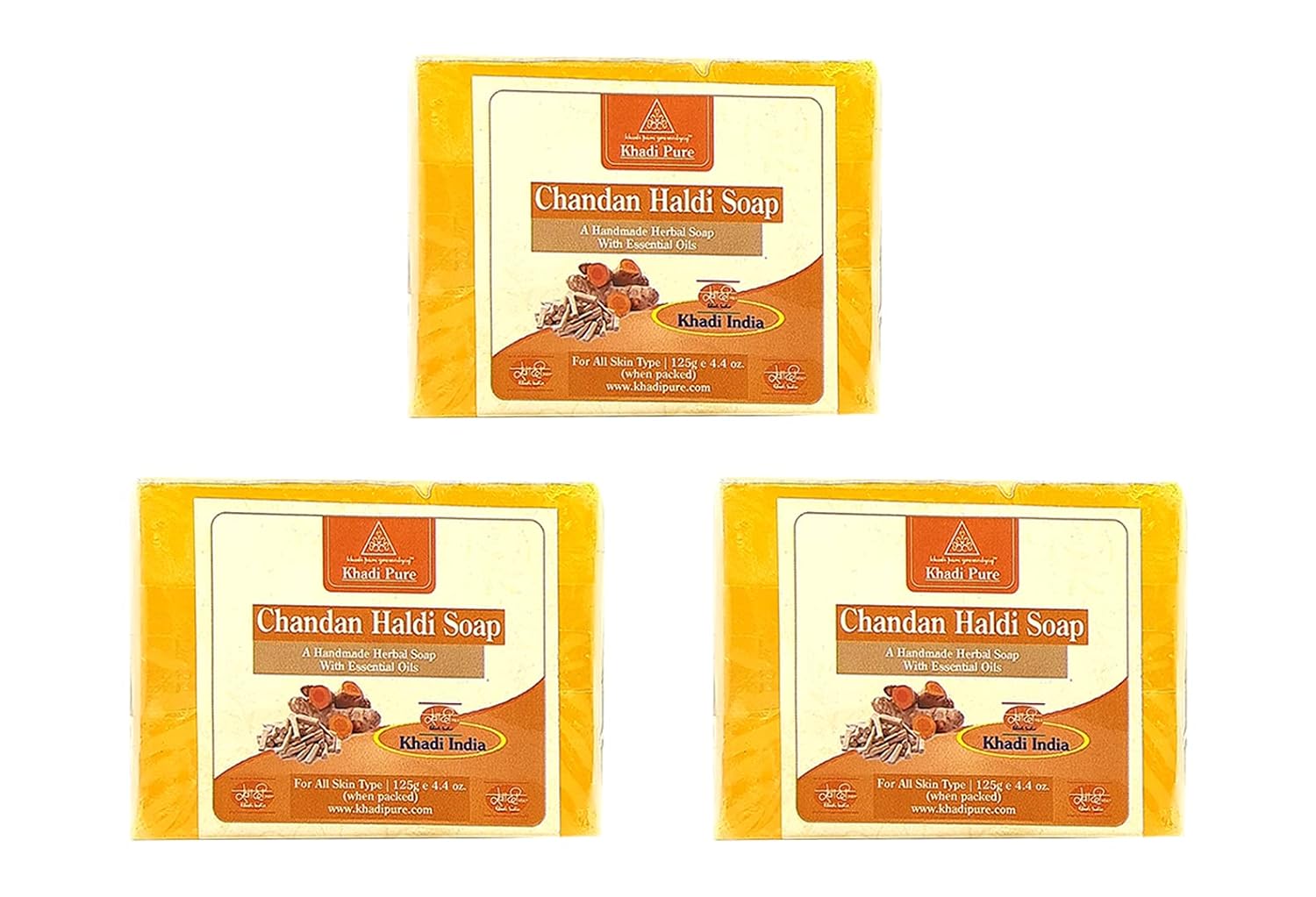 Khadi Pure Herbal Chandan Haldi Soap – Pack of 3 (375g)