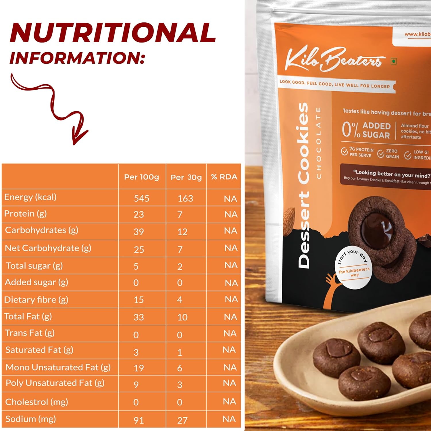 KILOBEATERS Keto Friendly Chocolate Dessert Healthy Diet Cookies Biscuits Snacks for Diet, With Sugar Free, No Maida, Zero Sugar & Zero Preservatives, 200 grams – (Pack of 1)