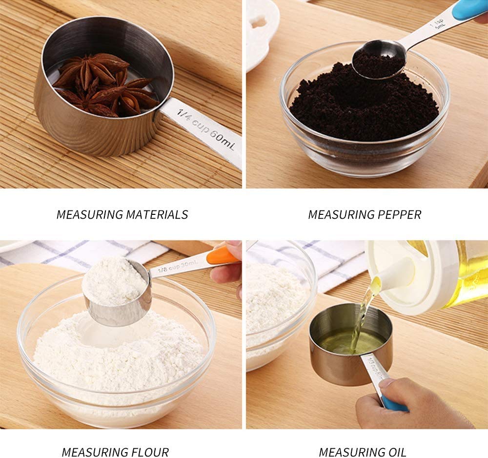 COOK SAFELY: The stainless steel measuring cups & magnetic double sided spoons are made of superior food grade stainless steel, rust-resistant, no toxic elements, which is 100% safe to use for both dry and wet ingredients
