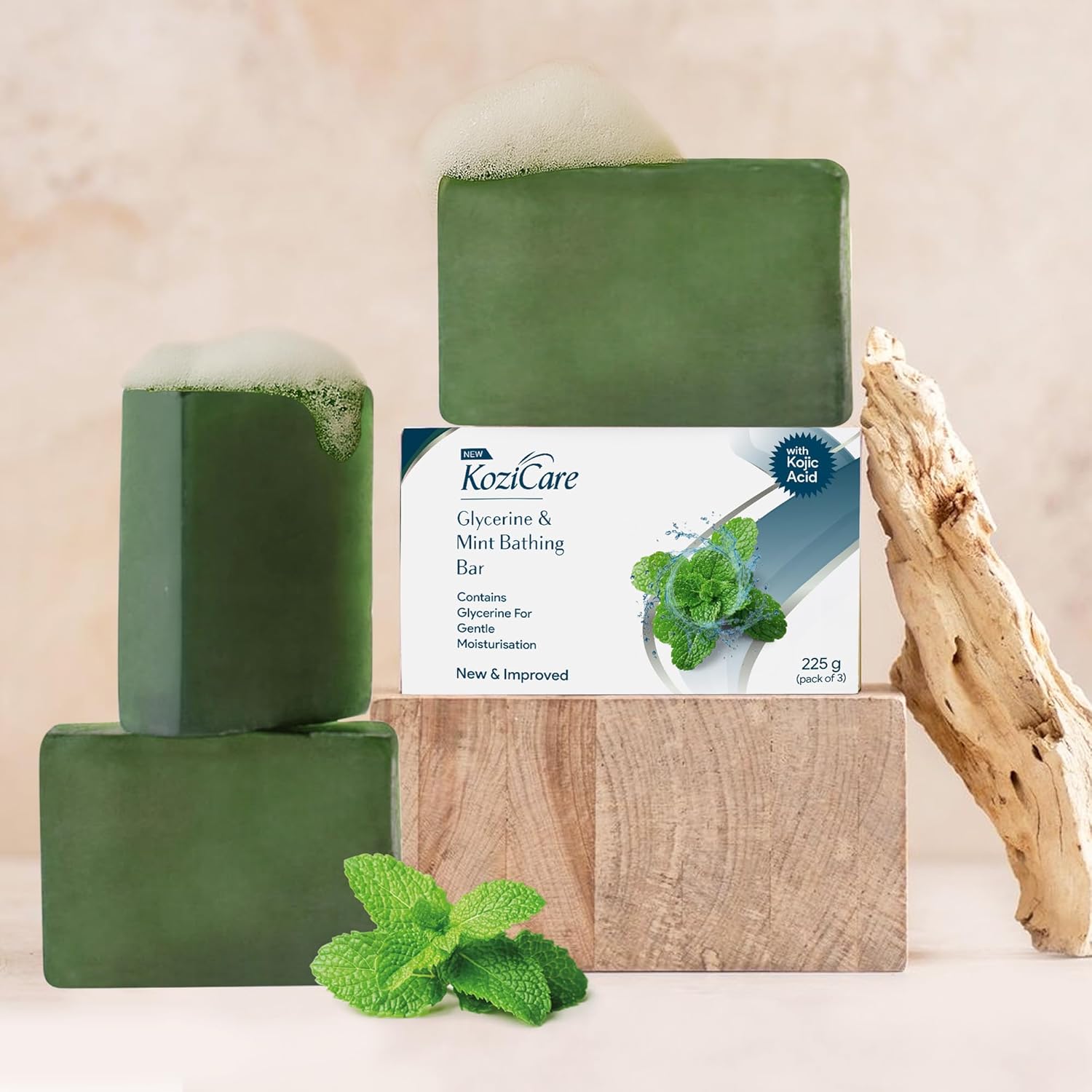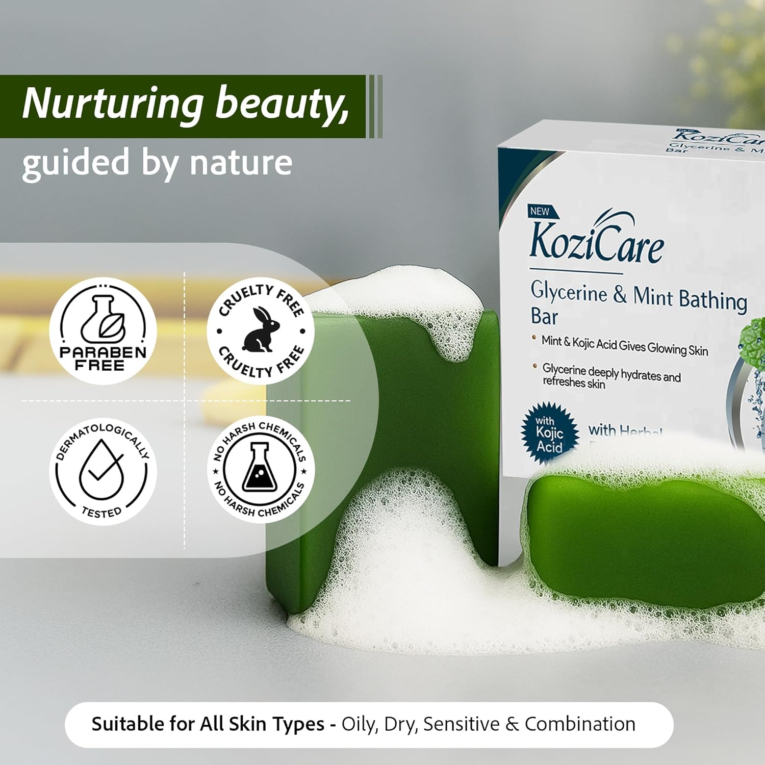 ✅ Glycerin Hydration: Glycerin in Kozicare Glycerin Mint Soap deeply moisturizes and hydrates the skin. Glycerin soap ensures a non-drying and non-irritating cleansing experience among bathing soap.