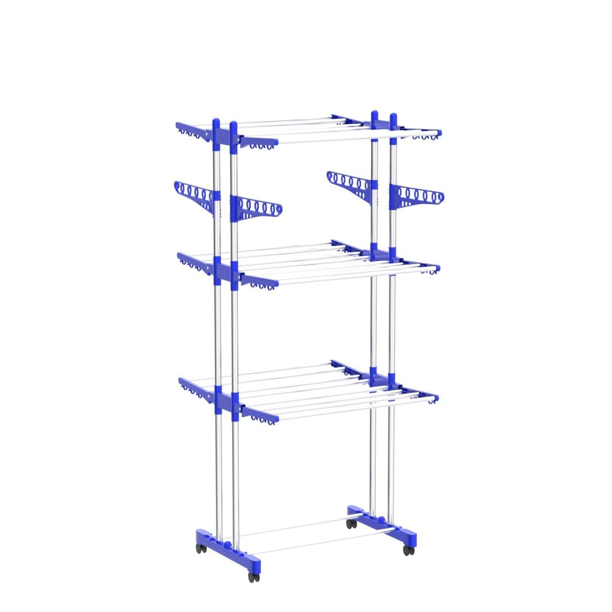 ☑️ FOLDING AND MOVABLE: It’s a 3 layer jumbo double pole cloth dryer rack having 6 foldable wings to save space, which makes it perfectly suitable for limited space. Besides, it has enough space between the rods for quick air dry and is equipped with 4 upgraded castor wheels which move 360 degree for its easy movement. Do not panic and rush to remove your clothes from your balcony/terrace while it rains, just move it under the fan effortlessly.