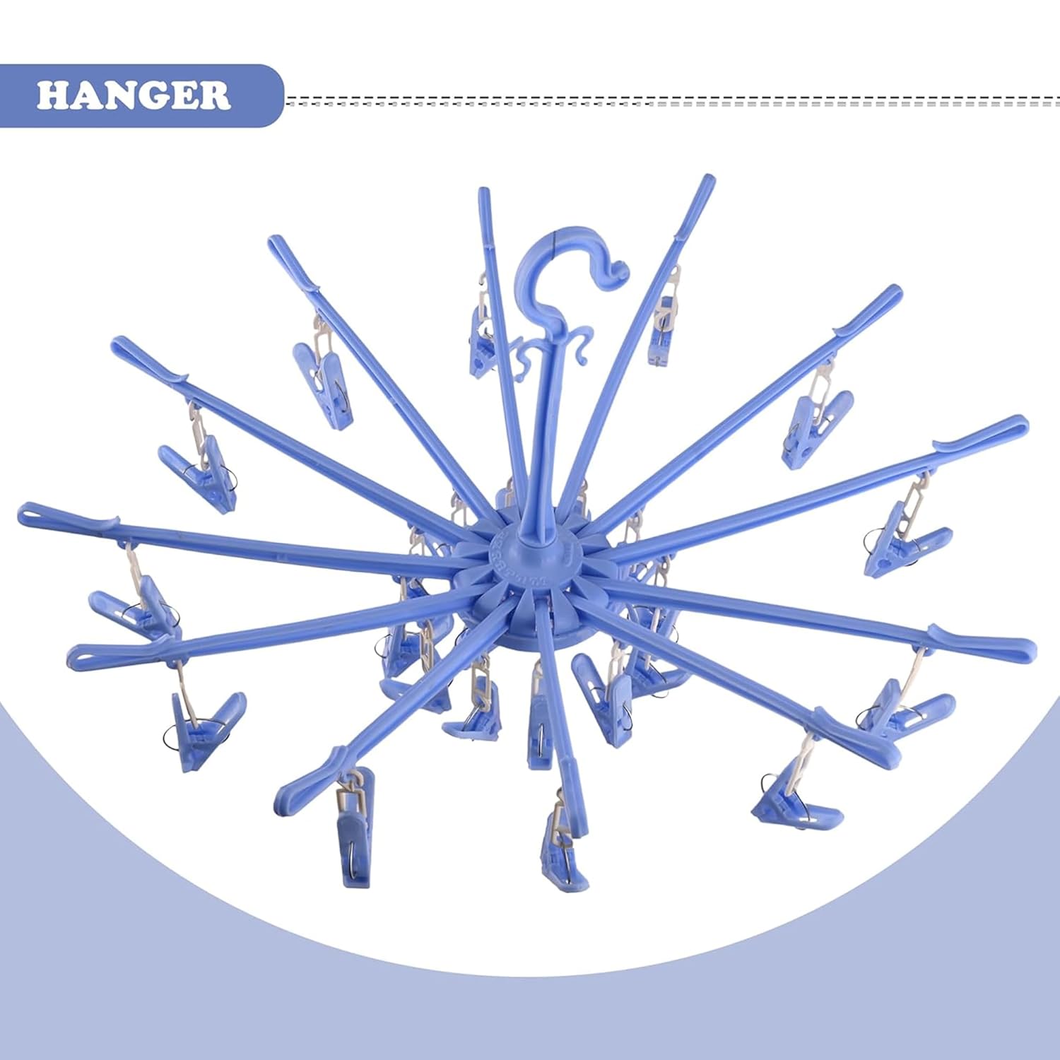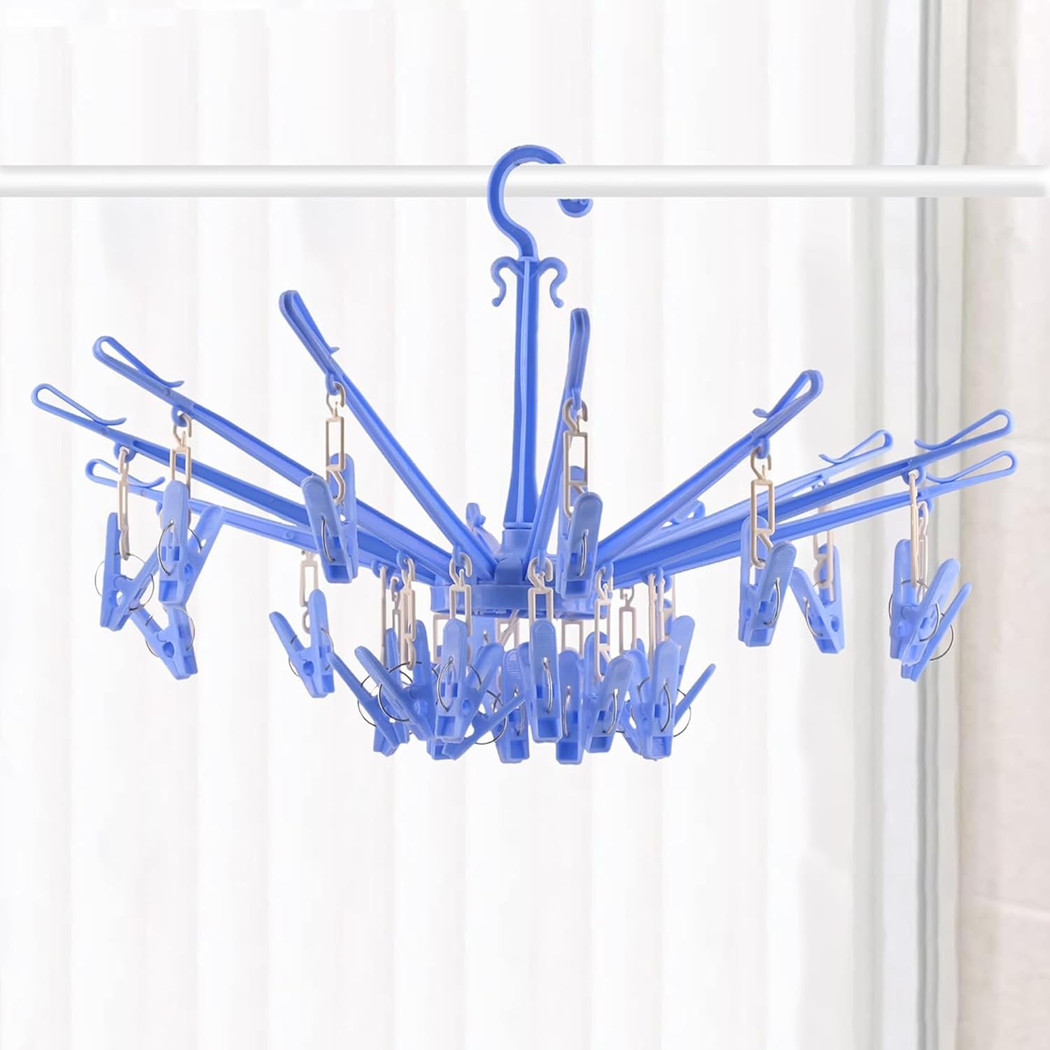 Home Home Kuber Industries Cloth Drying Hanger | 24 Clips Baby Drying Pegs | 360 Degree Rotatable Hanger | Clip Stand for Cloth | Folding| Blue