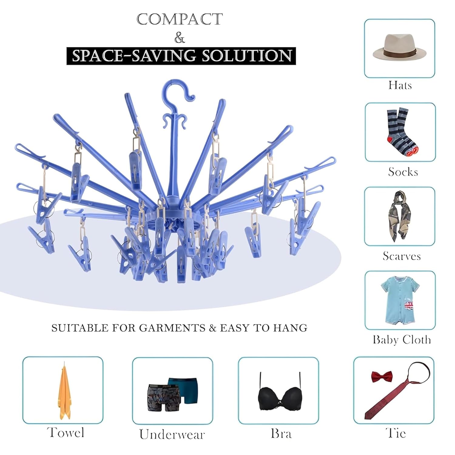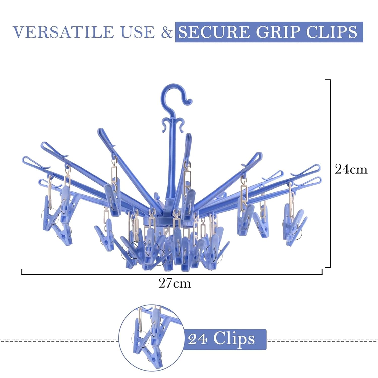 PACKAGE CONTAIN: 1 Piece (24 Clips) Hanger | MATERIAL: Plastic | PRODUCT DIMENSION : 27 cm x 27 cm x 24 cm