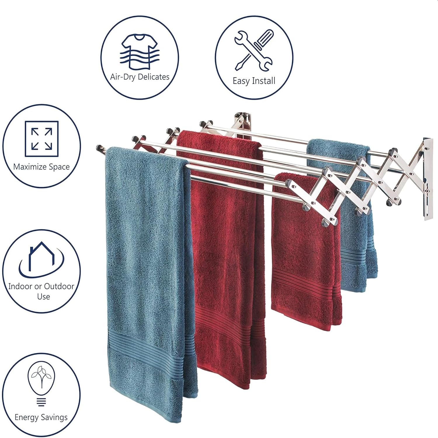 ✅ Space-saving drying solution – This cloth dryer stand fits easily in small spaces because it mounts on walls, making it ideal for balconies or bathrooms.