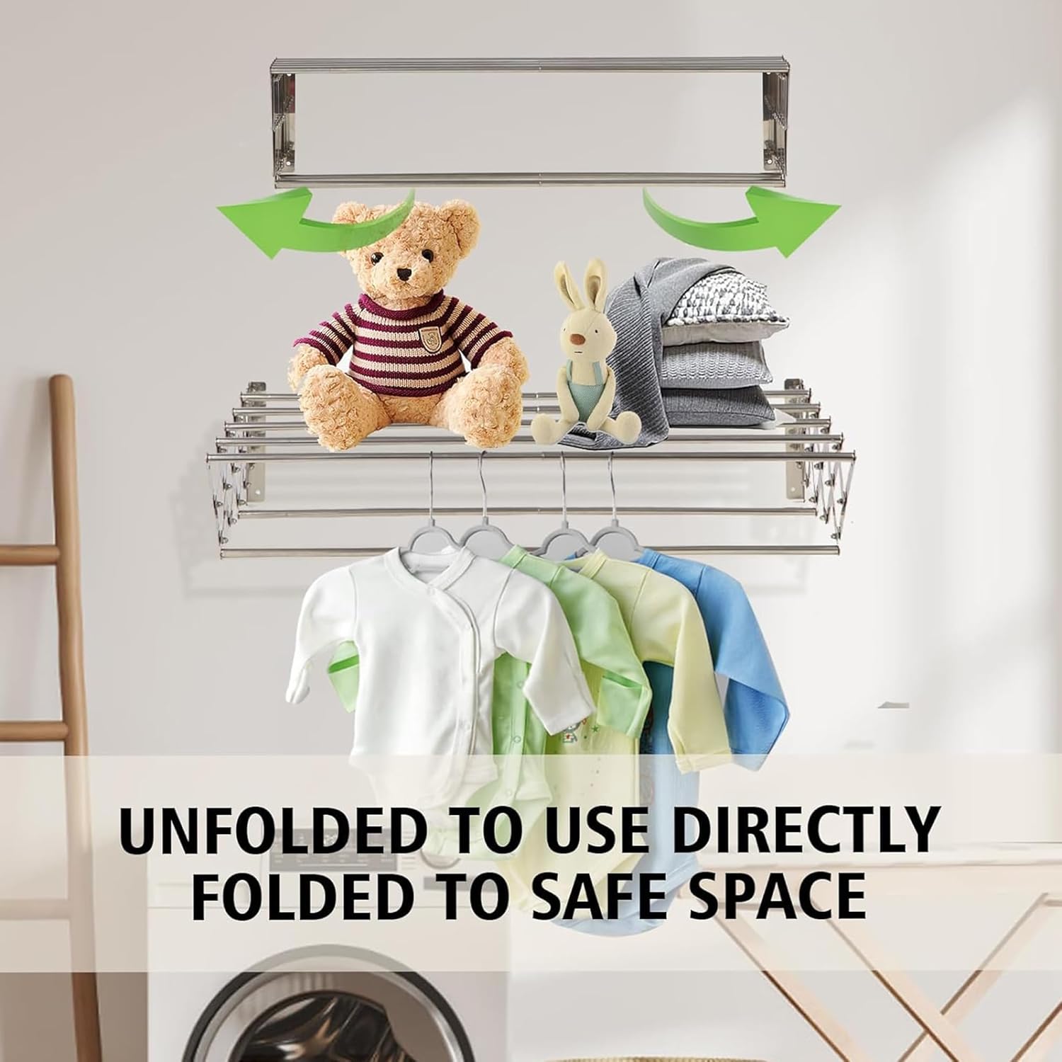 ✅ Easy wall installation – This clothes stand for drying wall mounted mounts easily on walls, offering a sturdy and secure drying option while utilizing unused vertical space.