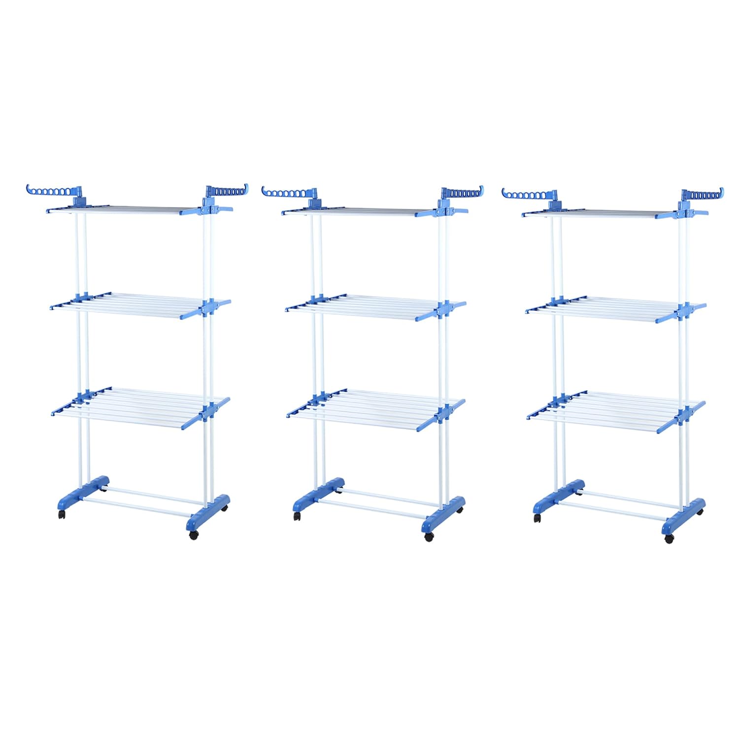 PACKAGE CONTAIN: Pack of 3 Cloth Drying Stand | DIMENSION: 64 x 74 x 170 |Color-Blue| TW116BU