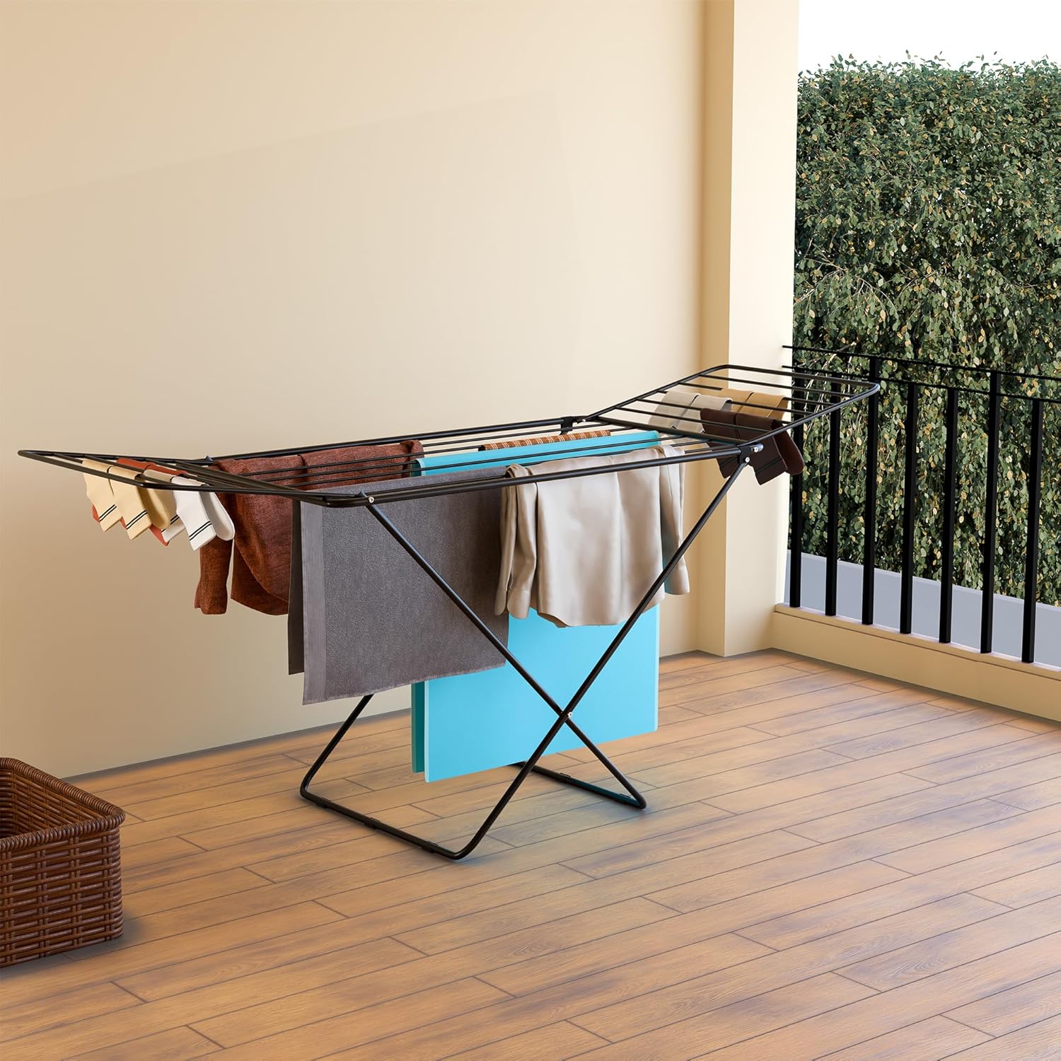 ✅ Efficient Clothes Drying Stand : The well-spaced rods of this clothes stand for drying foldable/ cloth drying stand for balcony allow for better airflow, helping clothes dry more quickly. This design feature makes it ideal for anyone looking to efficiently dry clothes in a time-saving manner.