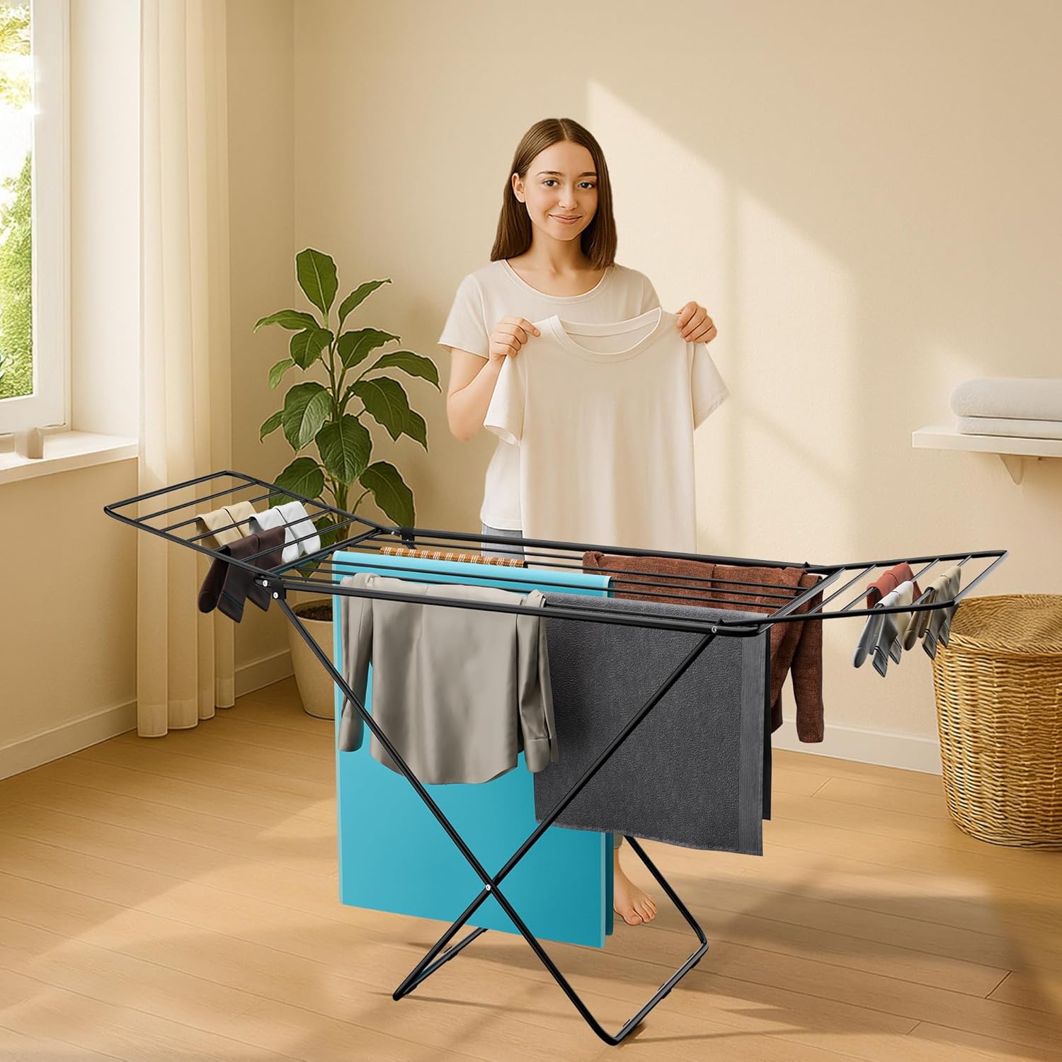 ✅ Foldable and saving space – this drying rack is foldable for easy storage in the corner of your closet, bedroom, living room or laundry area. With a compact design, it saves your living space.