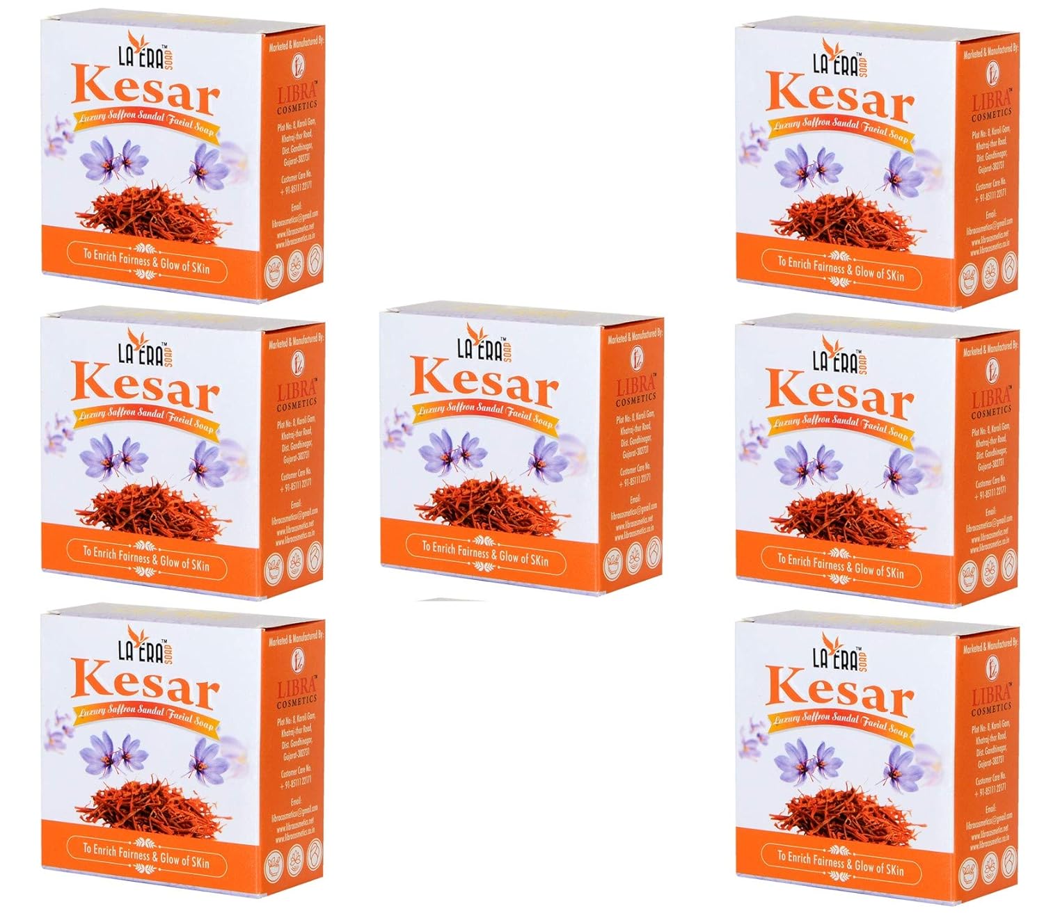 LA ERA KESAR SOAP is a excellent natural ingredient for reducing pigmentation, brown spots and other skin blemishes. LA ERA kesar luxury soap has myriad of beauty benefit.apart from kesar this luxury soap contains sandal ,camphor ,silicon oil and glycerine. This age-old combination of Kesar & Chandan, effectively exfoliates dead skin cells from the surface. It even fights tanning; fades dark spots and blemishes; and lightens the overall tone of the skin. Saffron is an excellent skin toning agent. It helps in eliminating the blackheads and unclogs the clogged pores. Saffron also scavenges the free radicals and promotes better circulation to the face, thereby ensuring that the skin looks toned and firm. Helps in curing acne: Saffron and sandal has amazing antimicrobial or antibacterial qualities, which impart medicinal values in it. Moreover, it also holds excellent exfoliating capacity. Both of these are necessary for clearing up the skin and curing acne. Reduces skin pigmentation: There is no other natural ingredient that can reduce pigmentation and other skin blemishes as effectively as saffron. It is the exfoliating property of the spice, which sloughs off the layer of the dead cells (along with dirt and grime) and reveals a pigmentation-free clear skin. Gives you a fair skin: Packed with various vitamins such as A, C, and the B vitamins, saffron is known to possess skin lightening properties. Saffron contains antioxidant Quercitin, which reduces production of Melanin pigment thus helps in providing fairness. :
