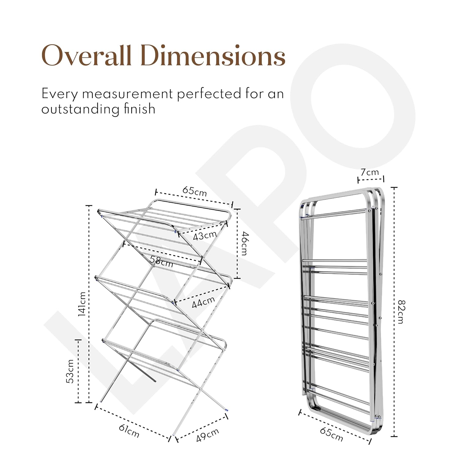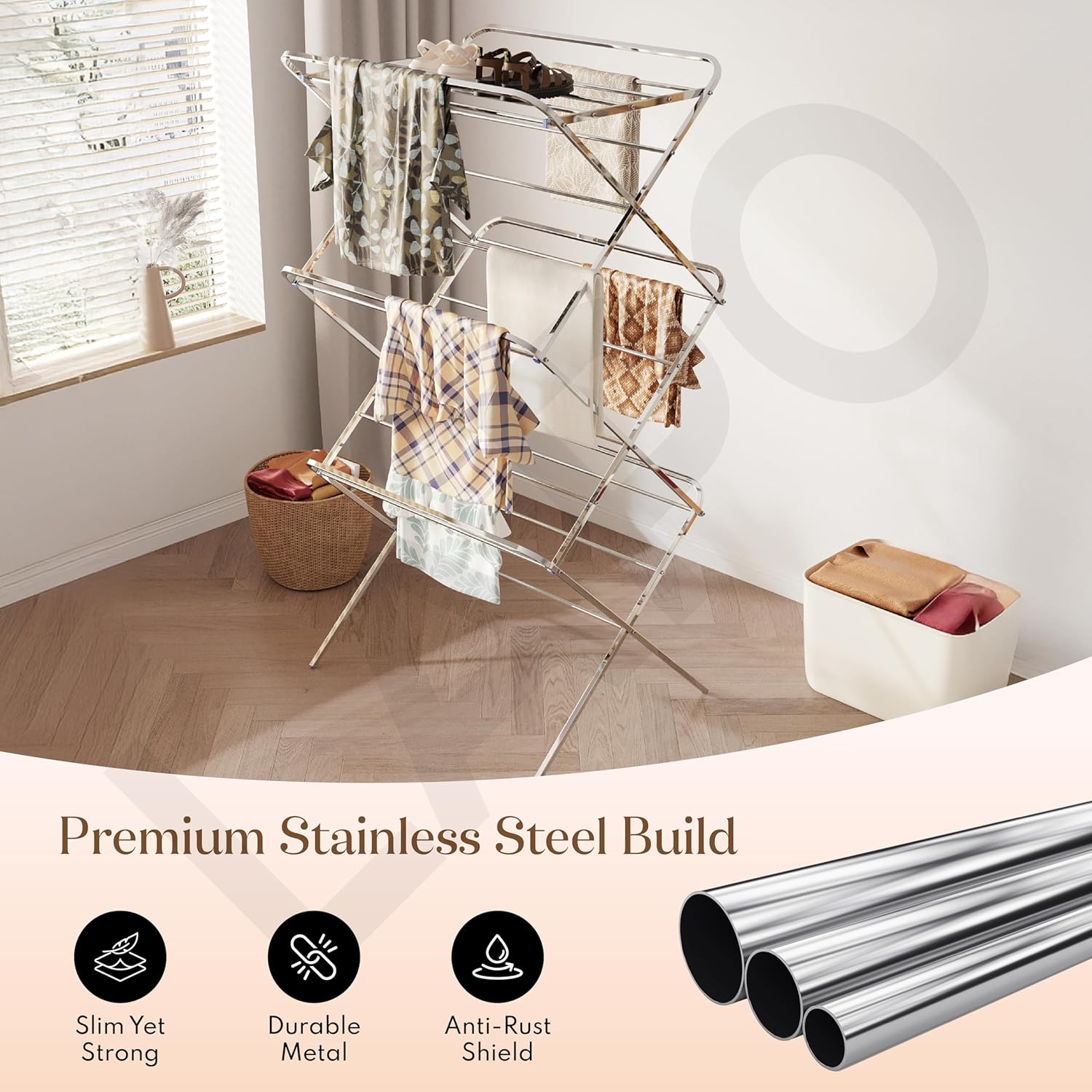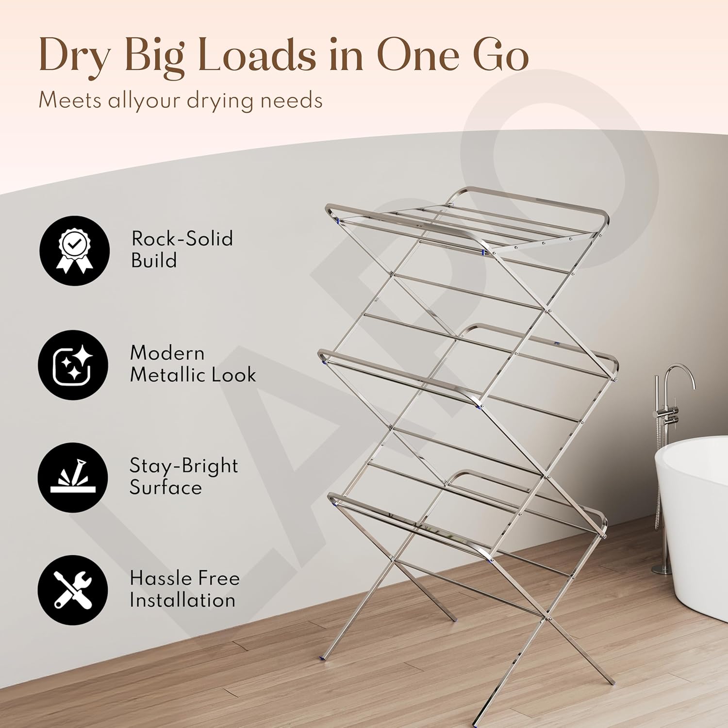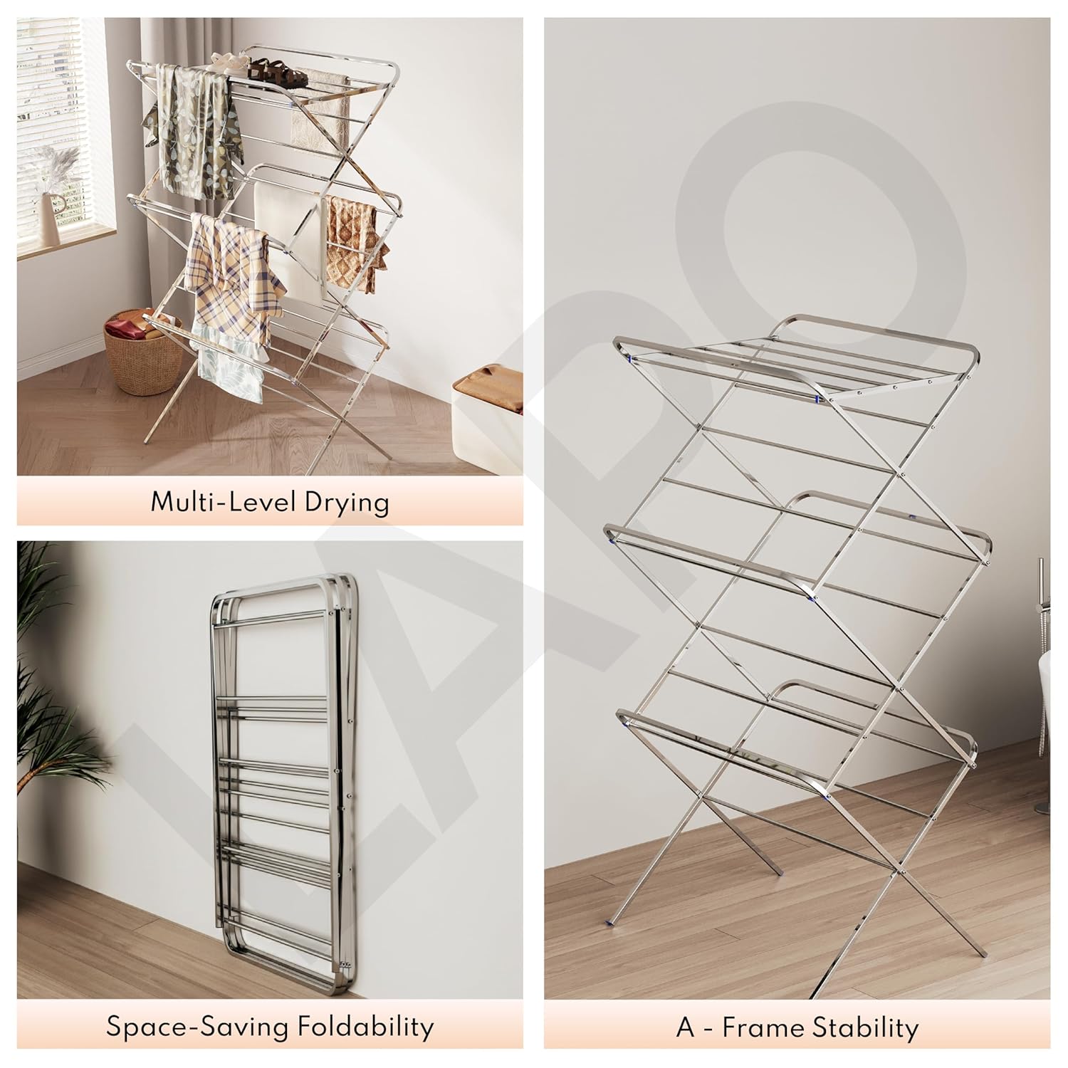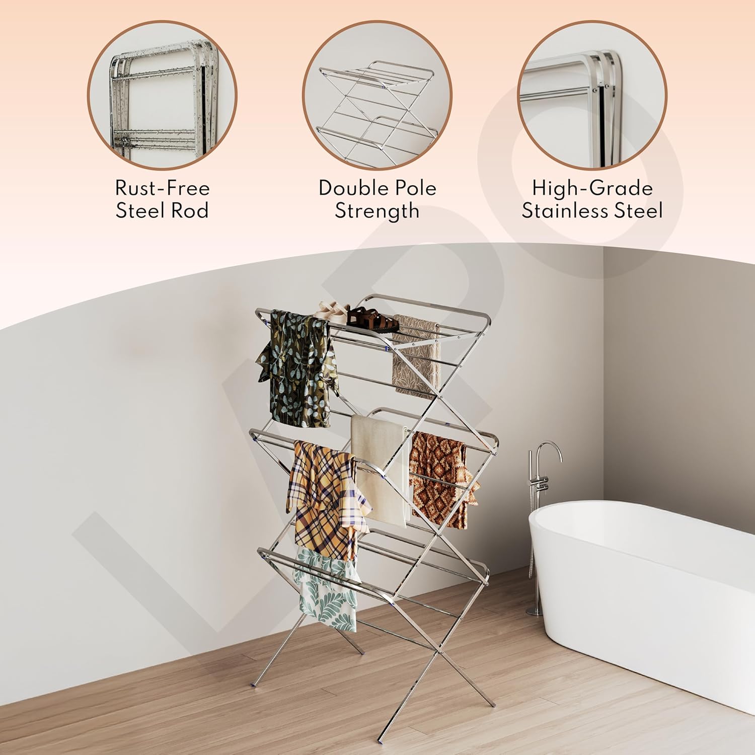 LiMETRO STEEL Stainless Steel Double Pole 3 Layer Stainless Steel Cloth Drying Stand with Hanger