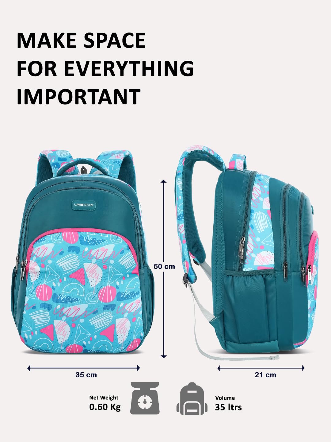 Be the first to review “Lavie Sport Doddle 35L Teal Backpack | Fits Upto 15 Inch Laptop | Organizer & Bottle Holder |Rain Cover | Gift for Men, Women, Boys, Girls | Laptop Sleeve for School & College” Cancel reply