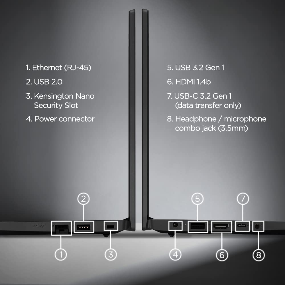 Ports: 1x USB 2.0 | 1x USB 3.2 Gen 1 | 1x USB-C 3.2 Gen 1 (support data transfer only) | 1x HDMI 1.4b | 1x Ethernet RJ-45 (LAN Port) | 1x Headphone / microphone combo jack (3.5mm) | 1x Power Connector